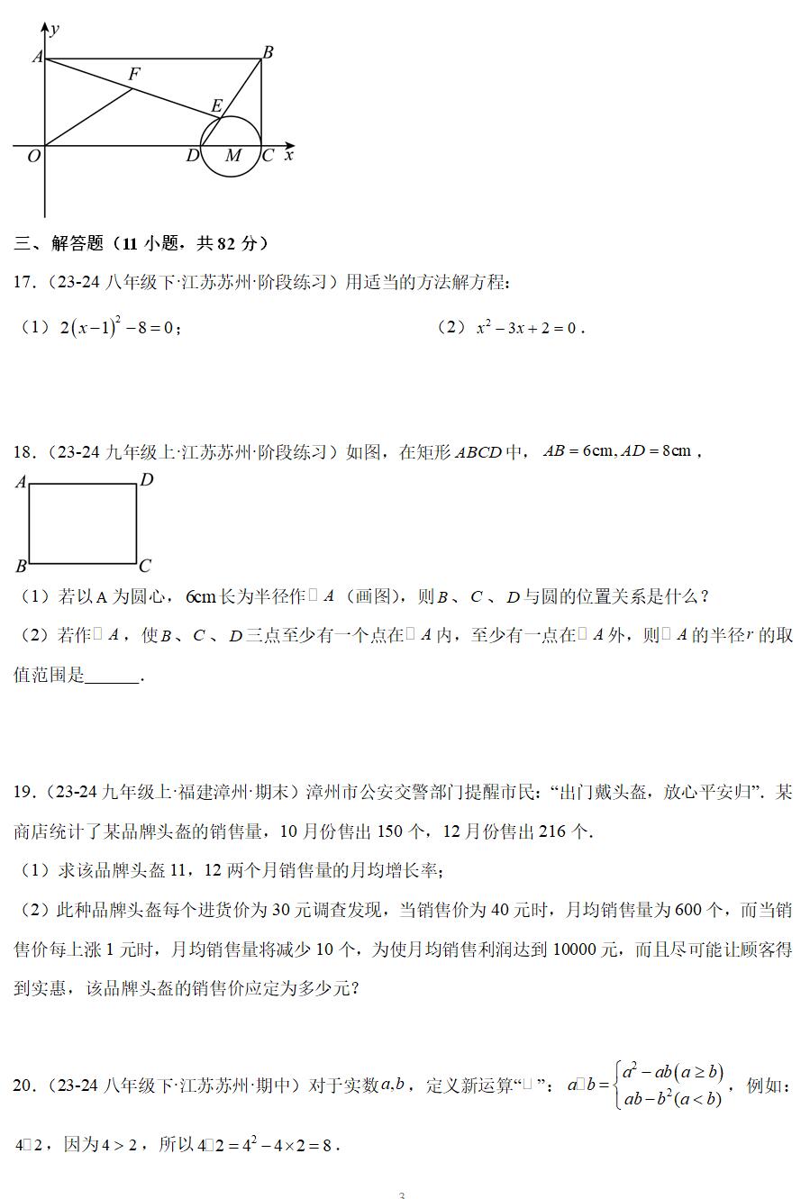 3.考试范围:九年级数学上册第1-2章(苏科版)