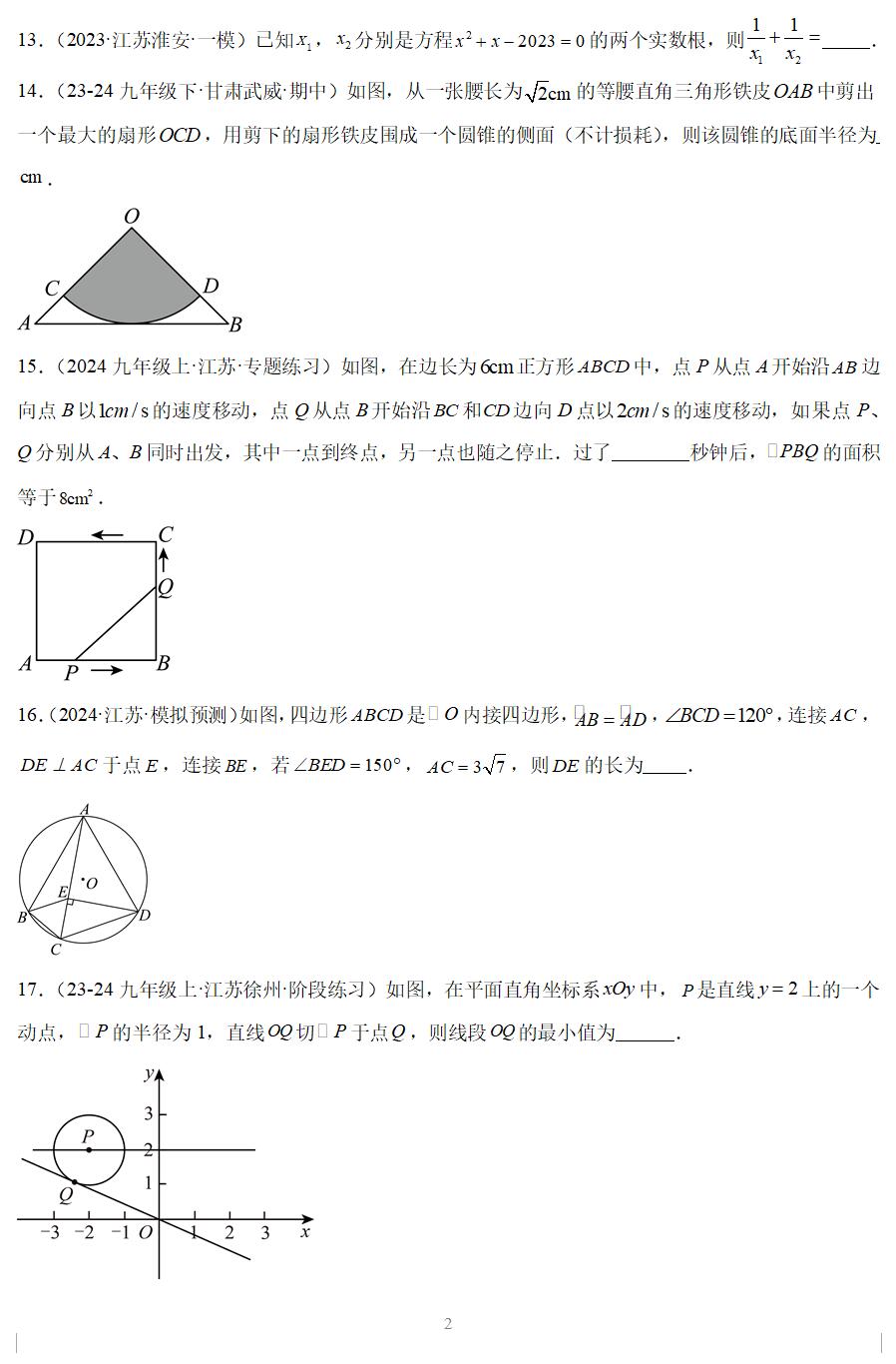 3.考试范围:九年级数学上册第1-2章(苏科版)