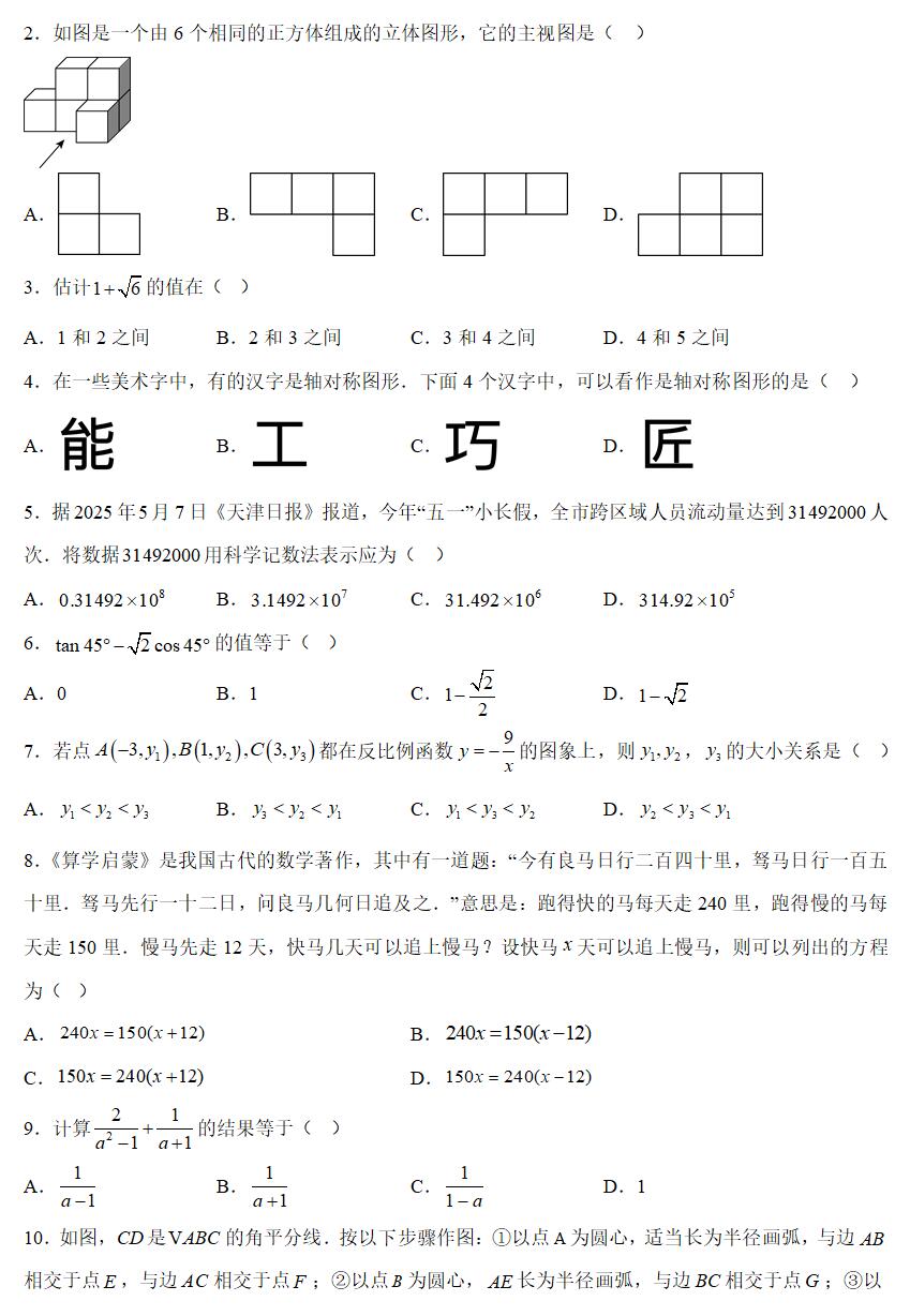 1.每题选出答案后,用2B铅笔把“答题卡”上对应题目的答案标号的信息点涂黑.如需改动,用橡皮擦干净后,再选涂其他答案标号的信息点.