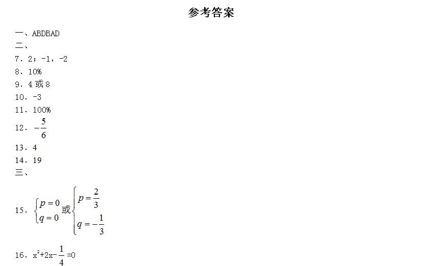 苏科版九年级上册数学第1章一元二次方程1.3一元二次方程的根与系数的关系同步练习及答案下载: