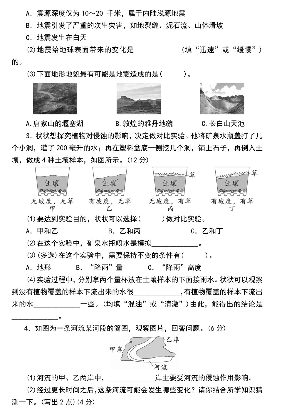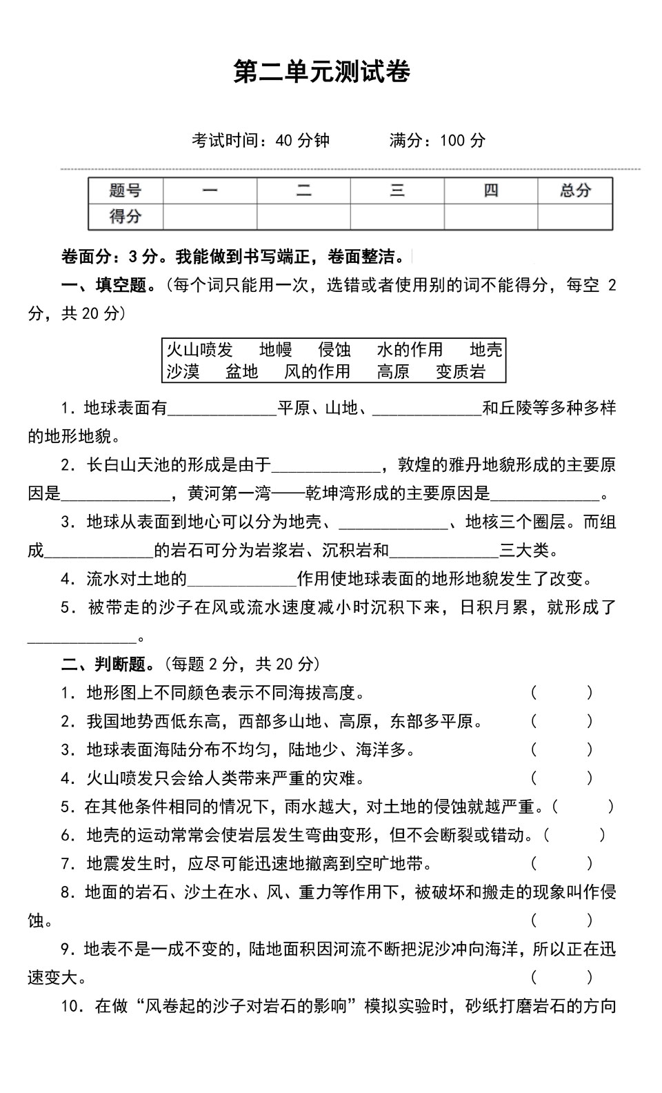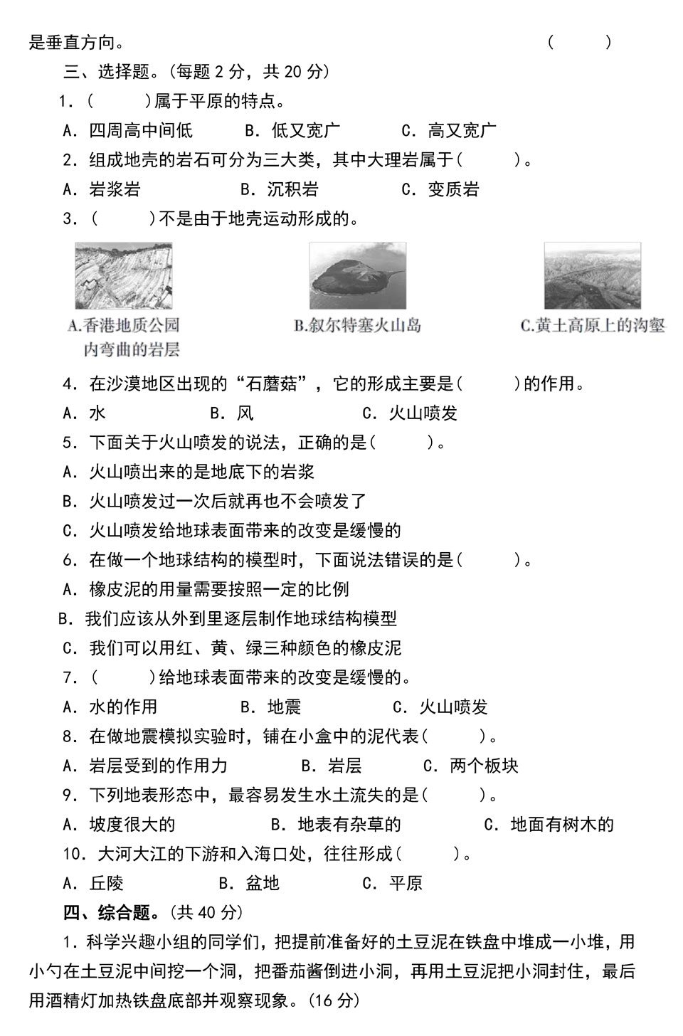 新教科版五年级上册科学第二单元地球表面的变化单元测试卷(含答案)下载: