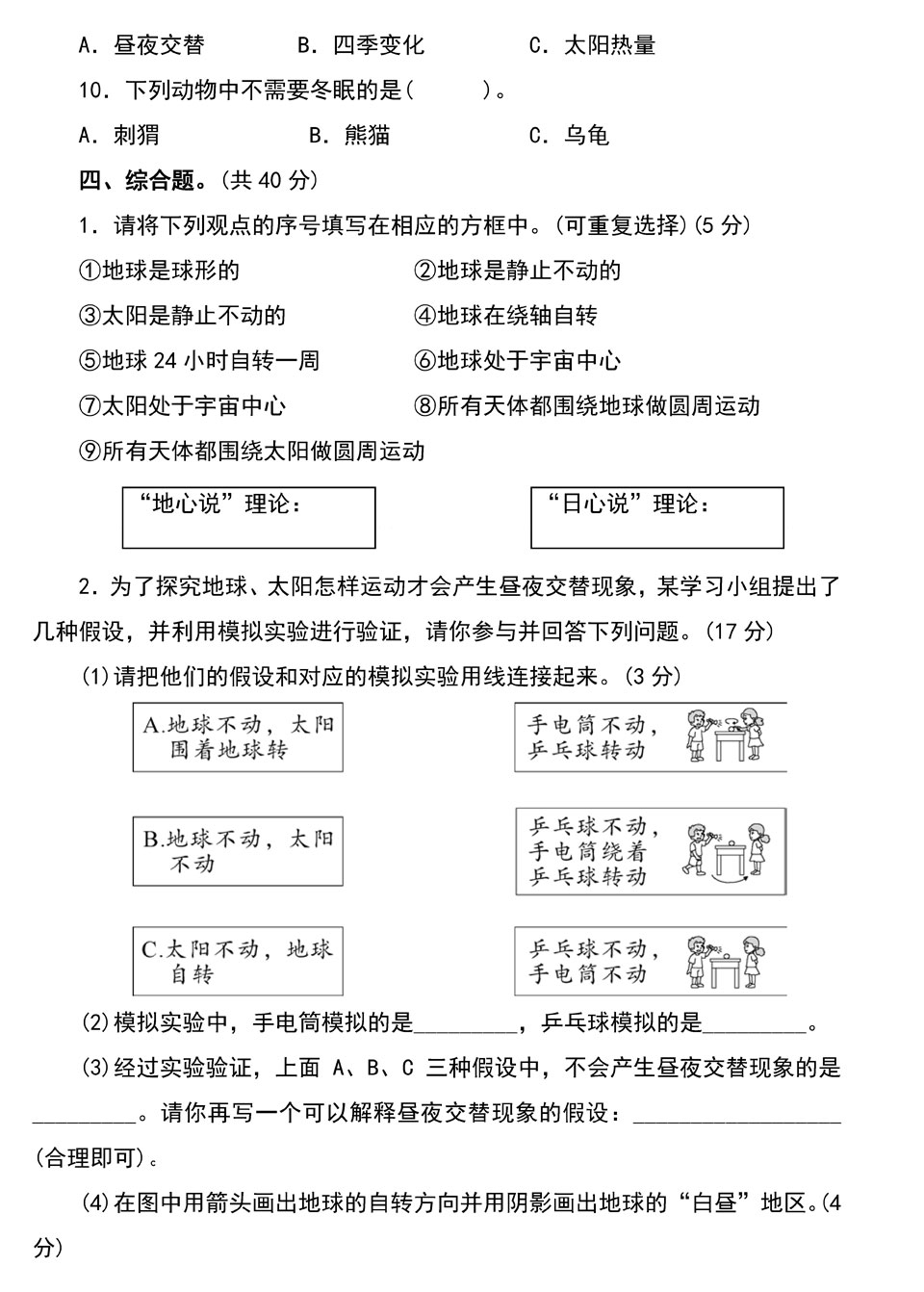 新教科版六年级上册科学第二单元地球的运动单元测试卷(含答案)下载: