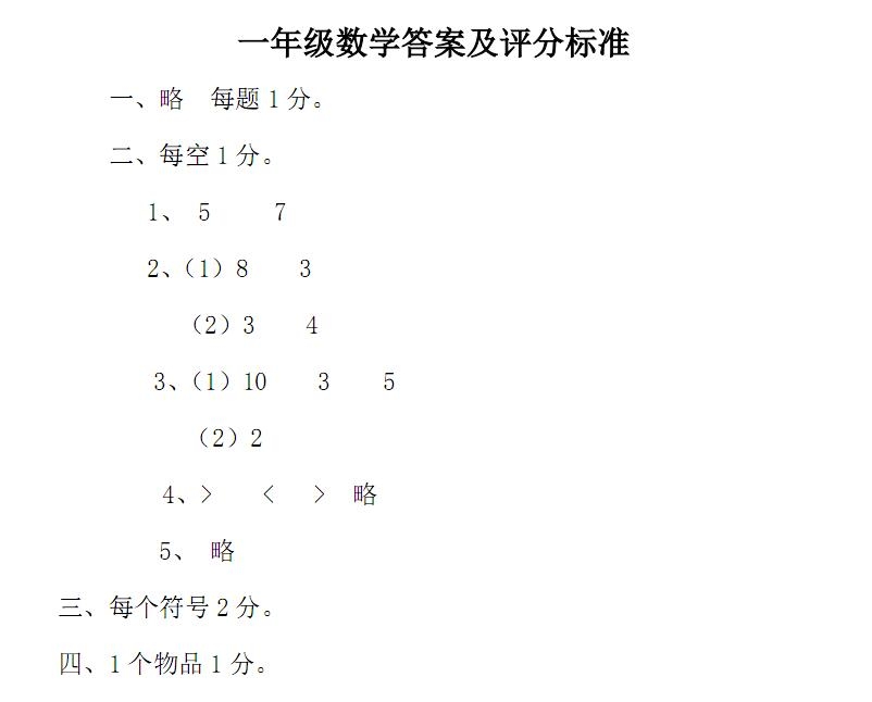 苏教版数学一年级上学期期中测试卷(附答案)下载: