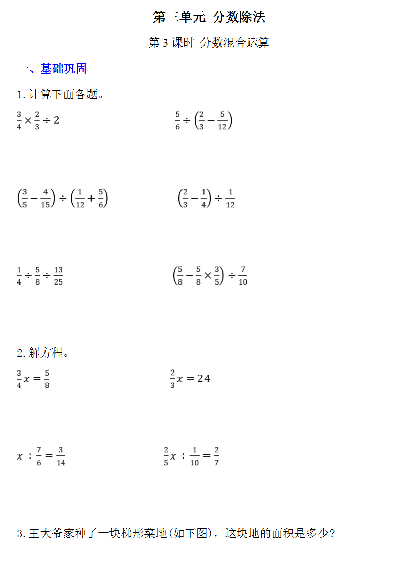 苏教版六年级上册数学第三单元分数除法3.3 分数混合运算同步练习(含答案)下载: