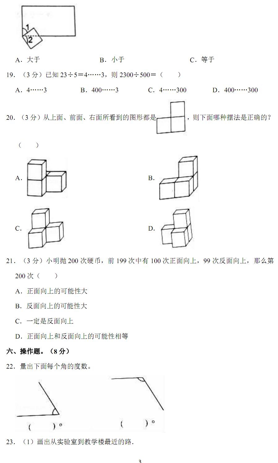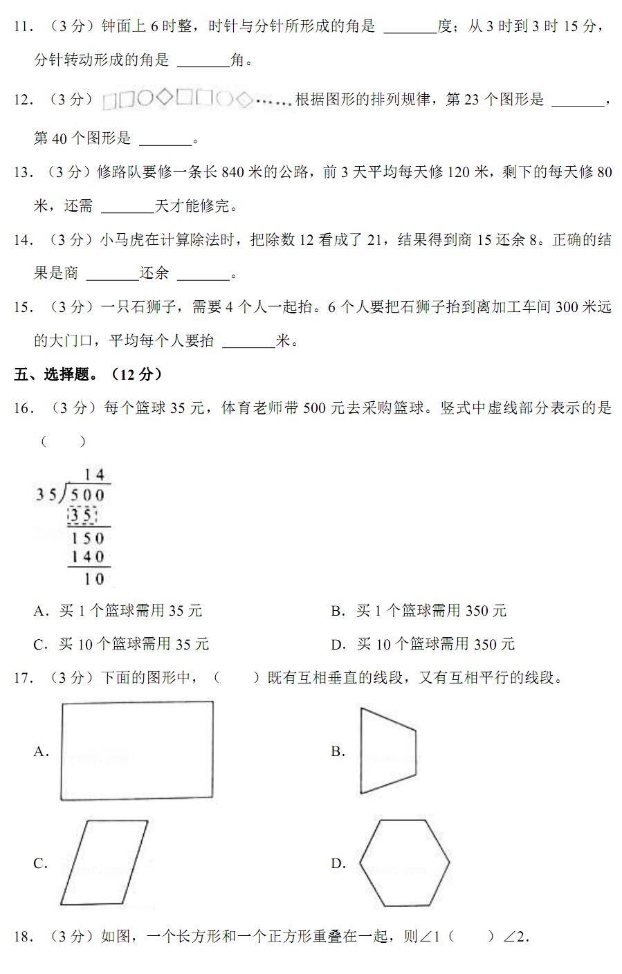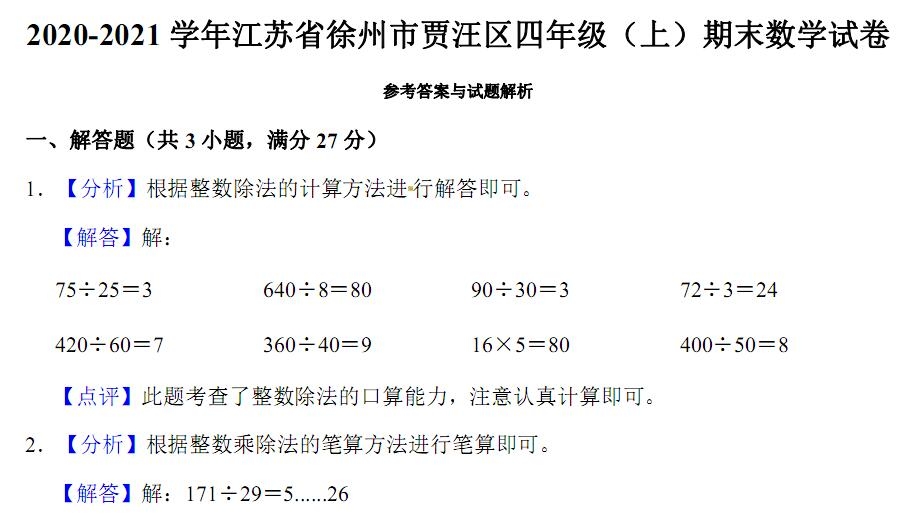 2020-2021学年徐州市贾汪区四年级(上)数学试卷(含答案解析)下载: