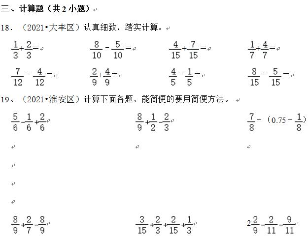 22.(2021•大丰区)用一张卡纸做贺卡,第一次用去它的4/9,第二次用去的和第一次同样多。两次一共用去这张卡纸的几分之几?