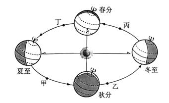 ①航天员出发时,地球运行到甲 ②航天员出发时,地球运行到乙