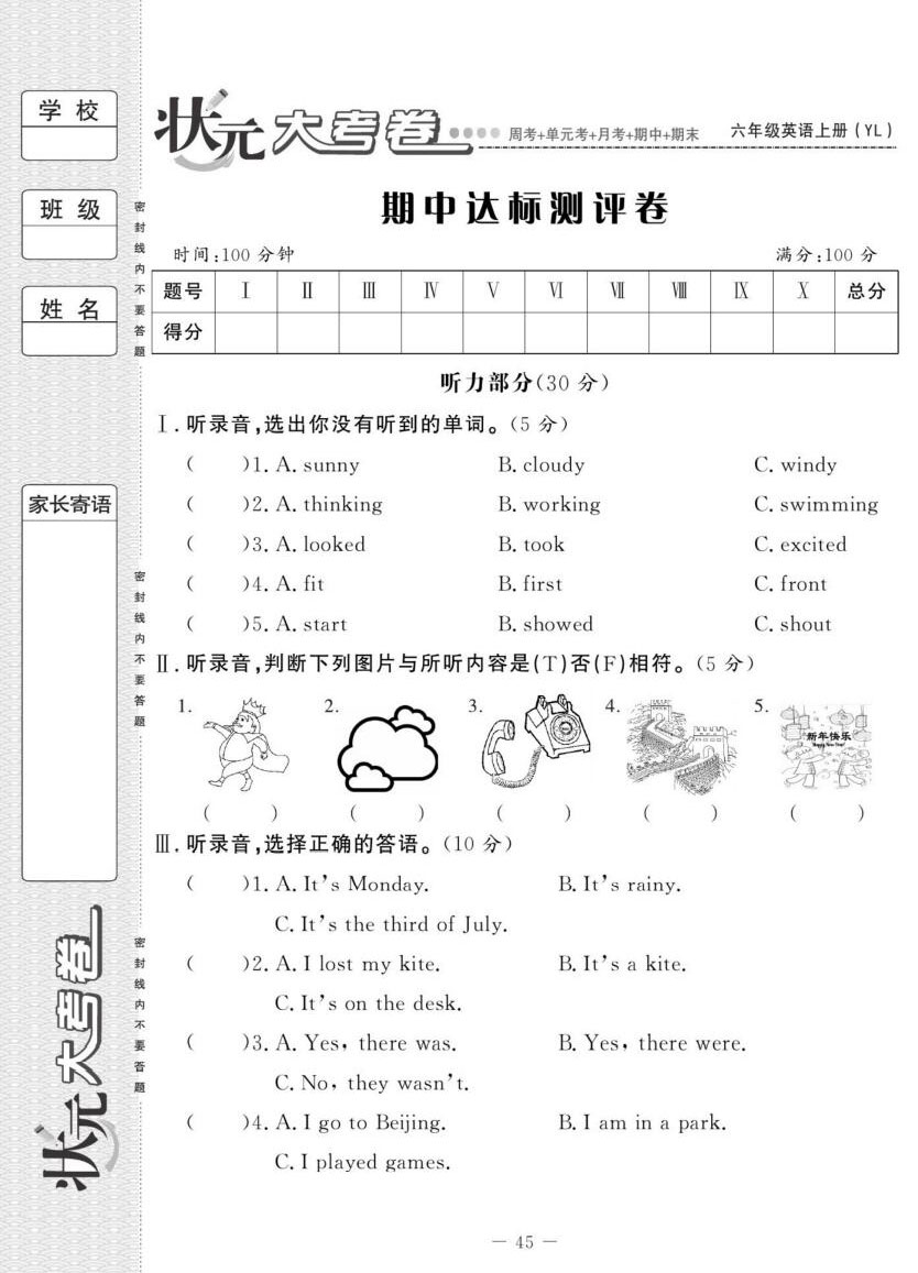 本资源来自:苏教译林版3-6年级上册英语状元大考卷合集(周测+单元+期中+期末试卷) 苏教译林版六年级上册英语状元大考卷(周测+单元+期中+期末试卷)下载: 资源下载此资源下载价格为3.9学币,VIP免费,请先登录资源每日更新! 升级终身VIP会员,享全站终身永久免费下载特权!限时优惠!如有问题,请联系客服QQ:6056064