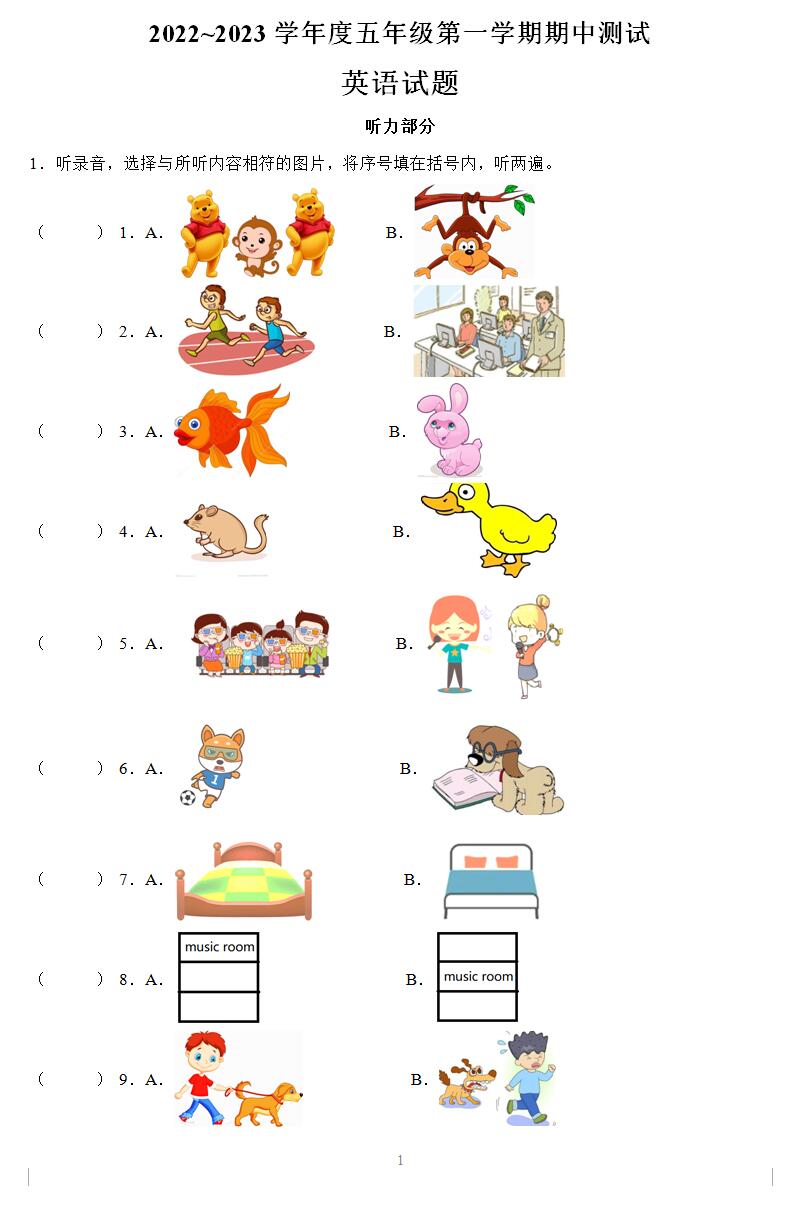 2022-2023学年苏教译林版五年级上学期英语期中测试卷(含听力及答案解析)下载: