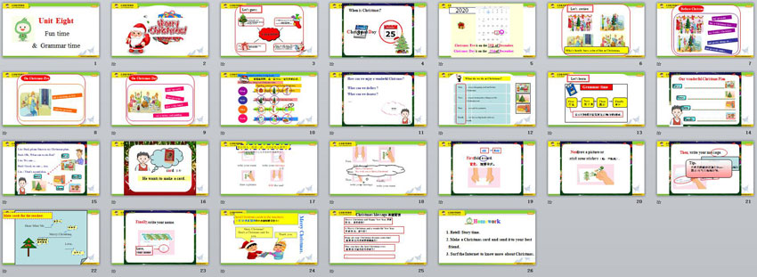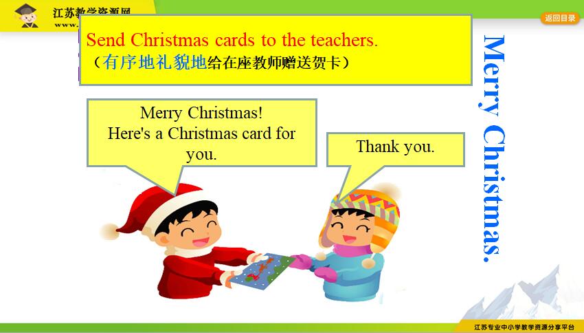 苏教译林版五年级上册英语Unit 8《At Christmas》PPT课件下载: 资源下载此资源下载价格为3.9学币,VIP免费,请先登录资源每日更新! 升级终身VIP会员,享全站终身永久免费下载特权!限时优惠!如有问题,请联系客服QQ:6056064