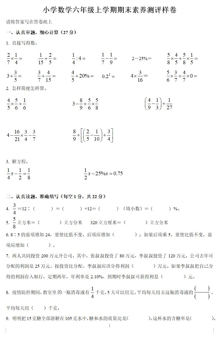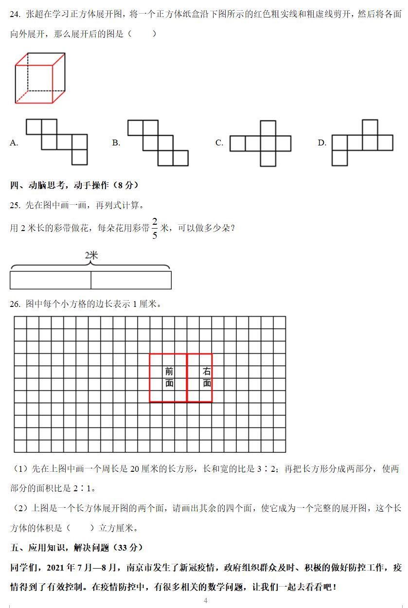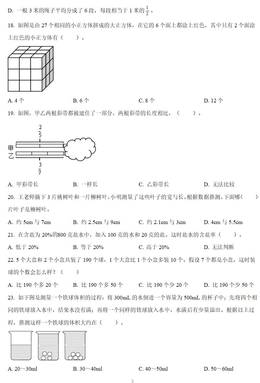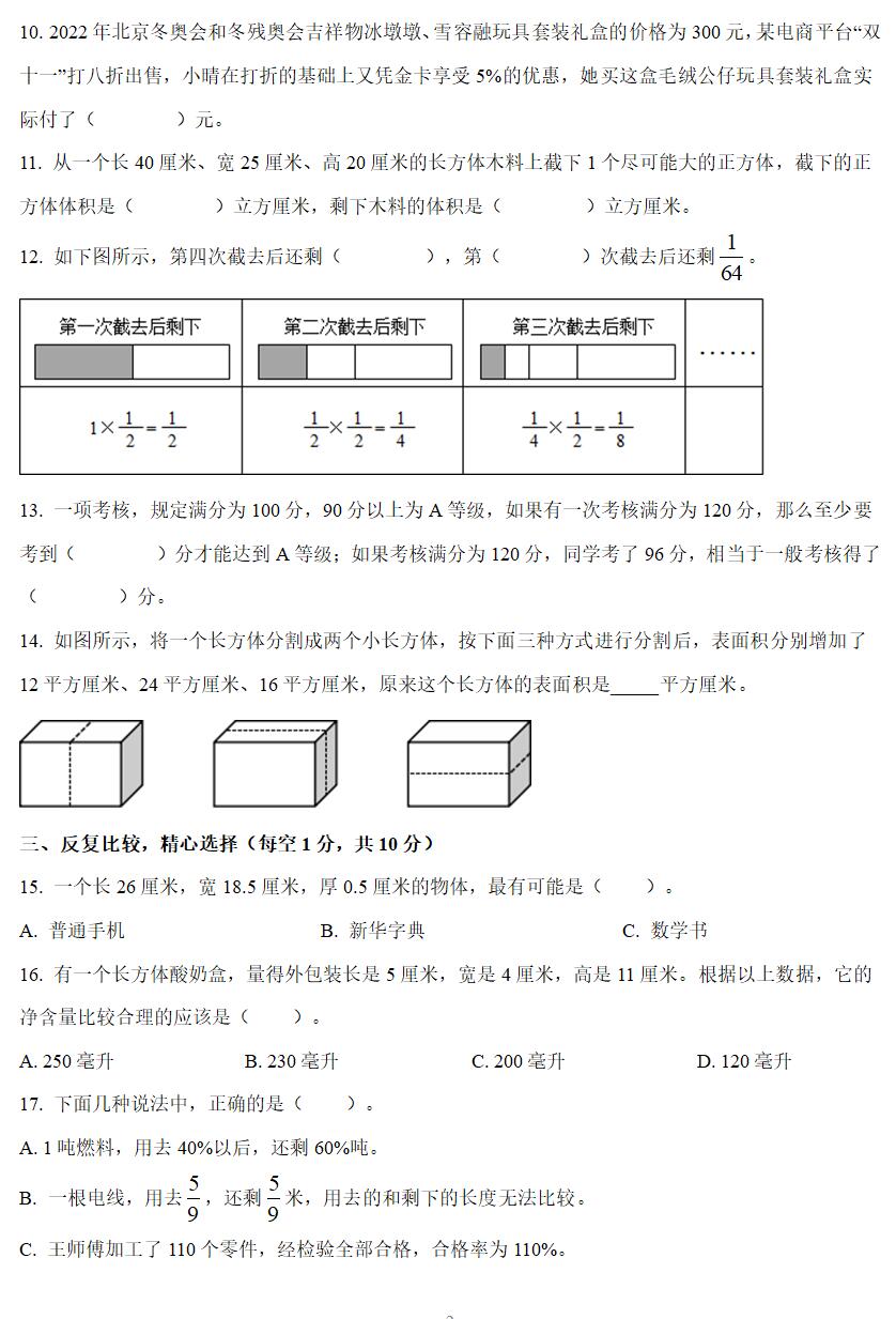 30.如果用一个8分米、宽6分米、高2分米的长方体纸箱包装这些口罩。