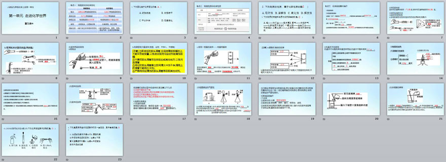 本资料来自专辑:人教版九年级上册化学期末单元复习PPT课件 人教版九年级化学上册第一单元《走进化学世界》期末复习PPT课件 资源下载此资源下载价格为1.5学币,VIP免费,请先登录资源每日更新! 升级终身VIP会员,享全站终身永久免费下载特权!限时优惠!如有问题,请联系客服QQ:6056064