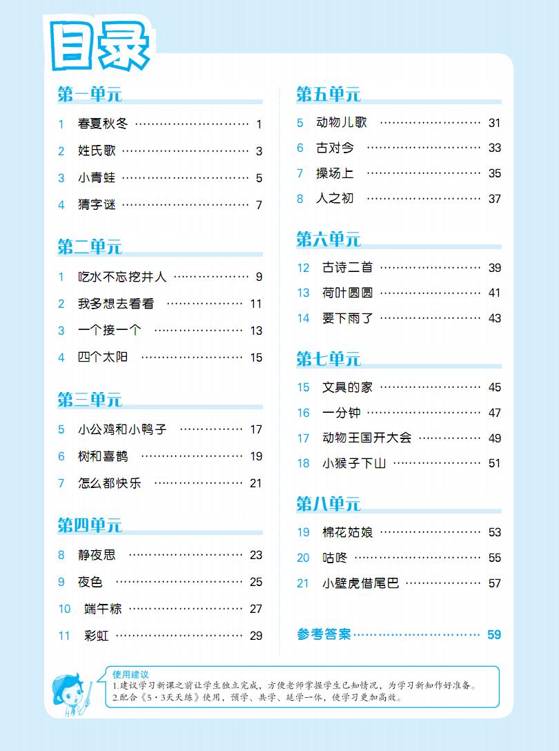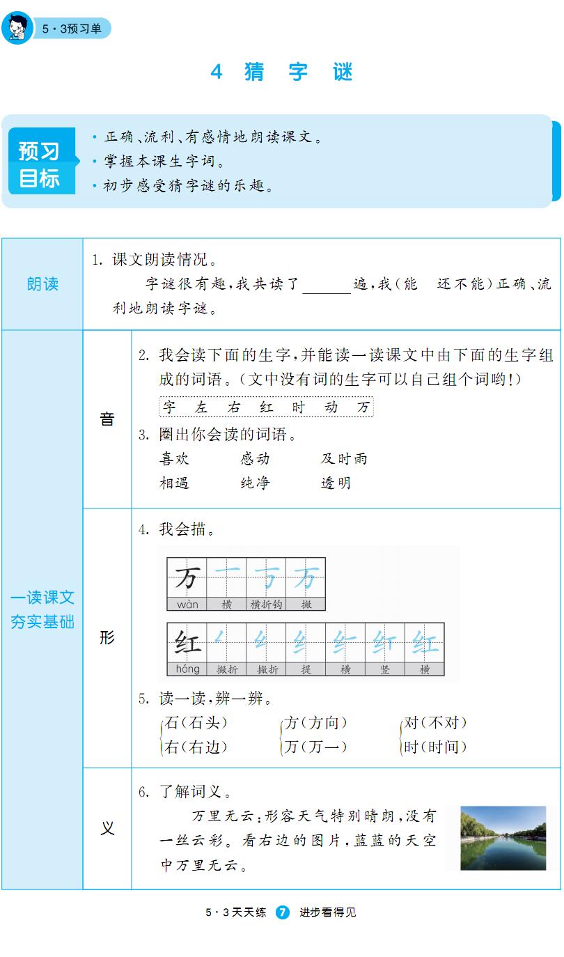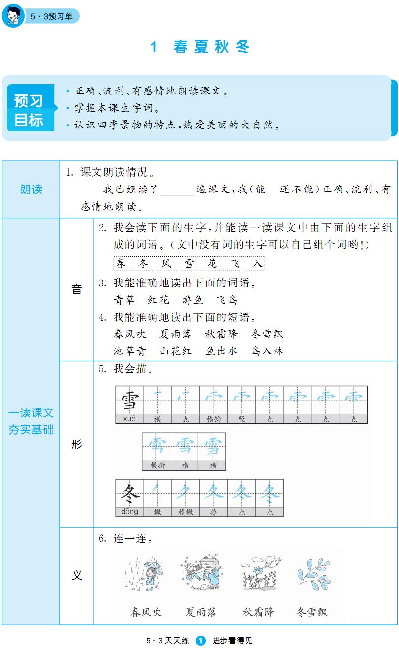 本资料来自专辑:人教部编版1-6年级下册语文53预习单汇总 人教部编版一年级下册语文53预习单(含答案) 资源下载此资源下载价格为2.5学币,VIP免费,请先登录资源每日更新! 升级终身VIP会员,享全站终身永久免费下载特权!限时优惠!如有问题,请联系客服QQ:6056064
