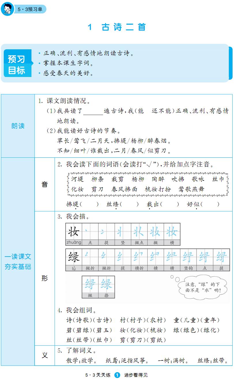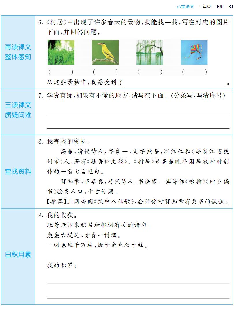 本资料来自专辑:人教部编版1-6年级下册语文53预习单汇总 人教部编版二年级下册语文53预习单(含答案) 资源下载此资源下载价格为2.5学币,VIP免费,请先登录资源每日更新! 升级终身VIP会员,享全站终身永久免费下载特权!限时优惠!如有问题,请联系客服QQ:6056064