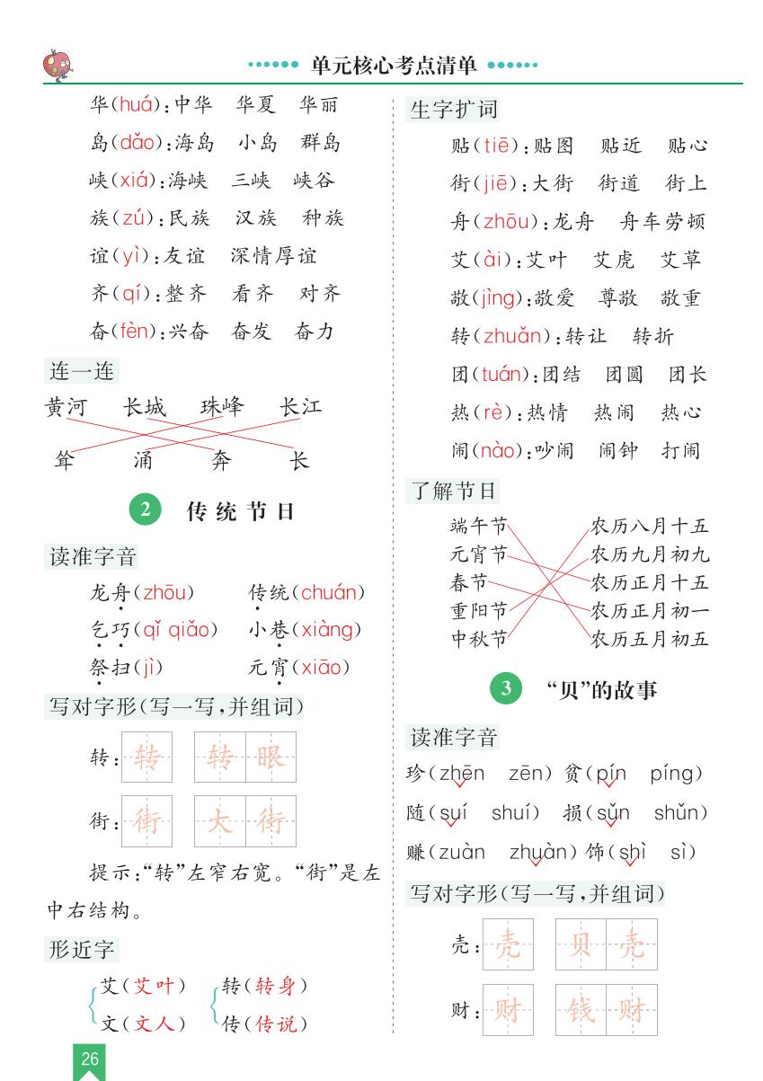 本资料来自专辑:人教部编版统编版二年级下册语文单元核心考点清单汇总 二年级下册语文第三单元 核心考点清单 资源下载此资源仅限注册用户下载,请先登录资源每日更新! 升级终身VIP会员,享全站终身永久免费下载特权!限时优惠!如有问题,请联系客服QQ:6056064