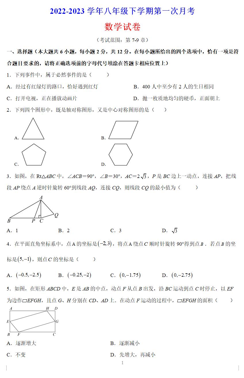 本资料来自专辑:2022-2023学年苏科版八年级下册数学单元测试卷+期中卷+期末卷汇总
