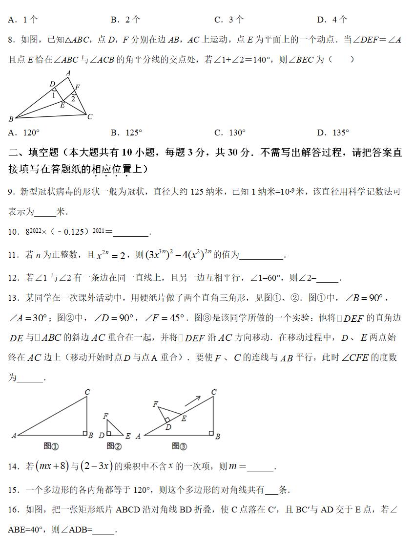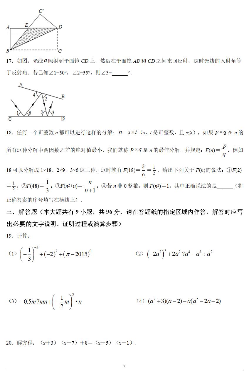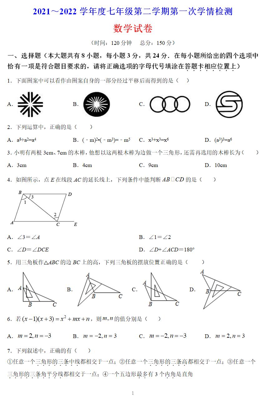 一、选择题(本大题共有8小题,每小题3分,共24分.在每小题所给出的四个选项中恰有一项是符合题目要求的,请将正确选项的字母代号填涂在答题卡相应位置上)