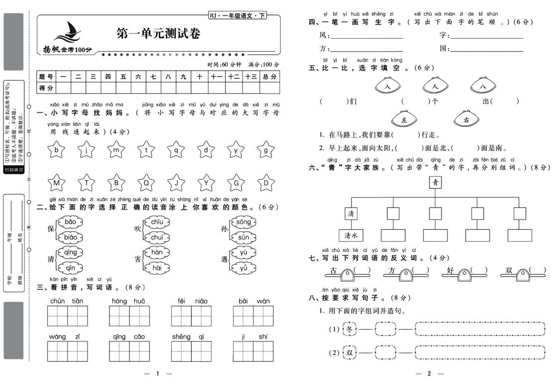 本资料来自专辑:人教版部编版统编版1-6年级语文下册《金考100分》单元卷+期中卷+期末卷 一年级语文下册《金考100分》精编单元卷+期中卷+期末卷 资源下载此资源下载价格为3.9学币,VIP免费,请先登录资源每日更新! 升级终身VIP会员,享全站终身永久免费下载特权!限时优惠!如有问题,请联系客服QQ:6056064
