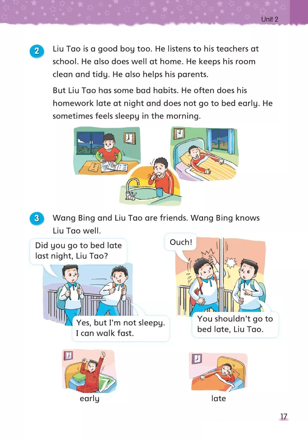 But Liu Tao has some bad habits. He often does his homework late at night and does not go to bed early. He sometimes feels sleepy in the morning.