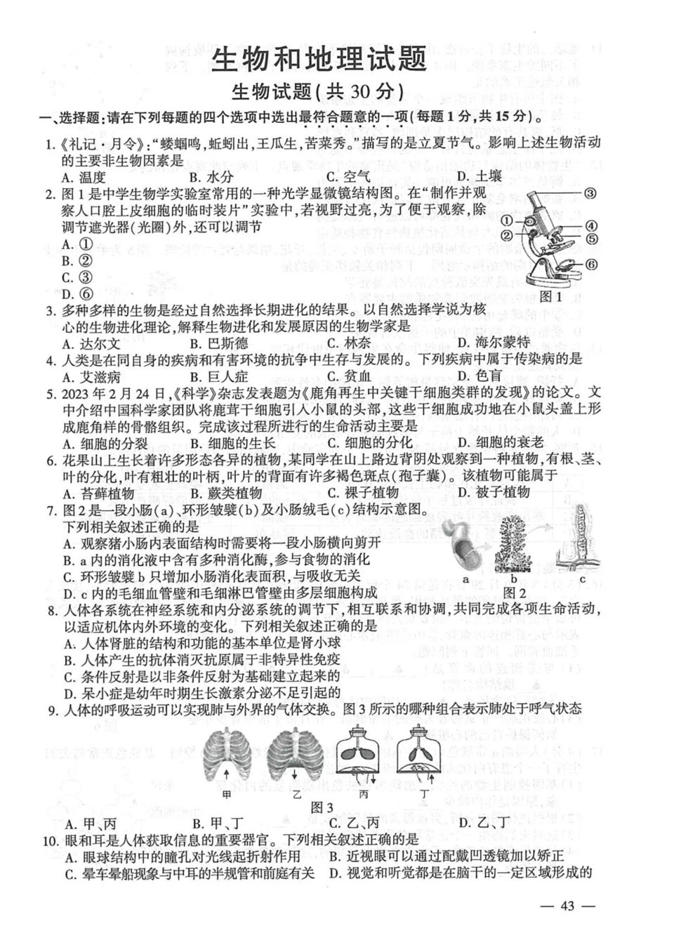 本资料来自专辑:2023年连云港市中考各科试卷真题汇总(图片版含答案) 2023年连云港市中考生物和地理试卷真题,连云港市2023年生物和地理中考试卷,2023年连云港市中考生物和地理真题原卷,高清无水印。 资源下载此资源仅限注册用户下载,请先登录资源每日更新! 升级终身VIP会员,享全站终身永久免费下载特权!限时优惠!如有问题,请联系客服QQ:6056064