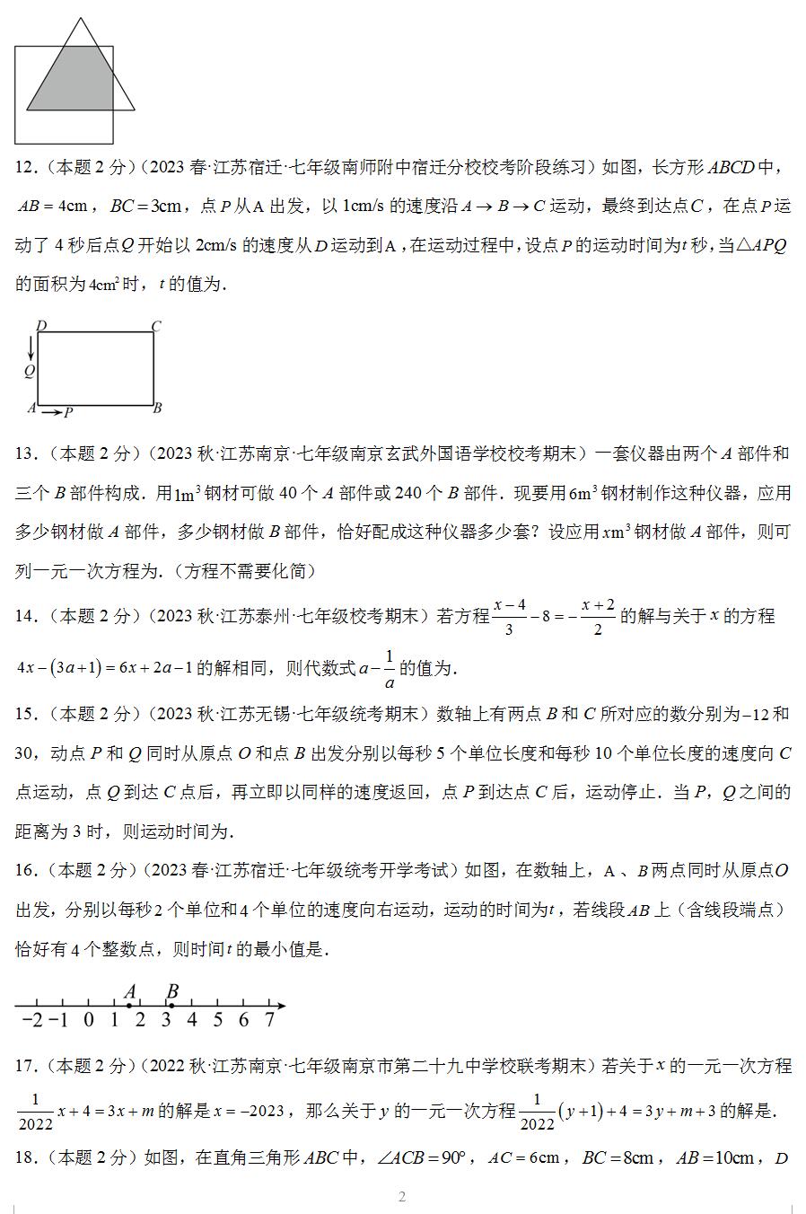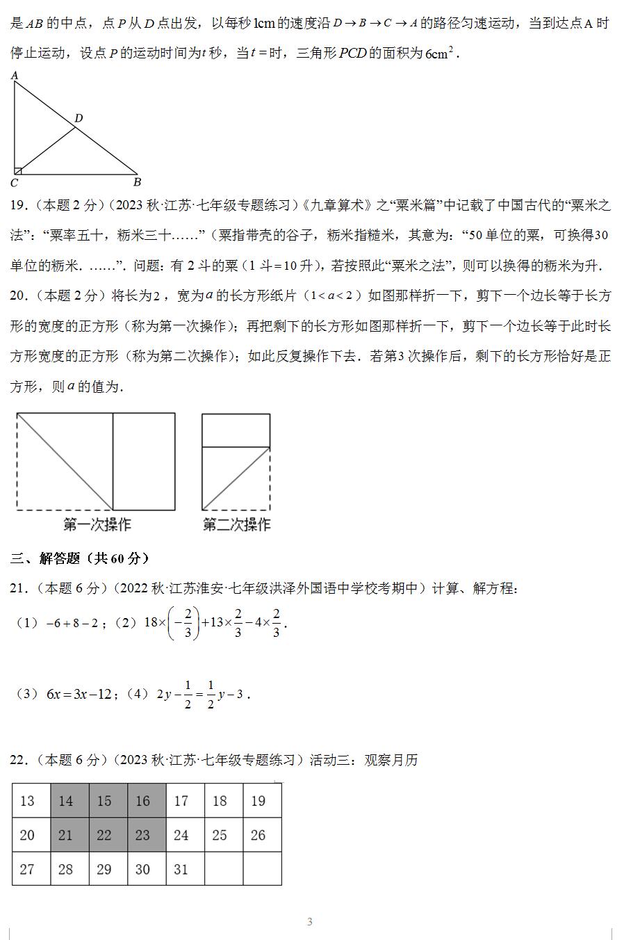 本资料来自专辑:2023-2024学年苏科版七年级数学上册单元测试卷+期中卷+期末卷