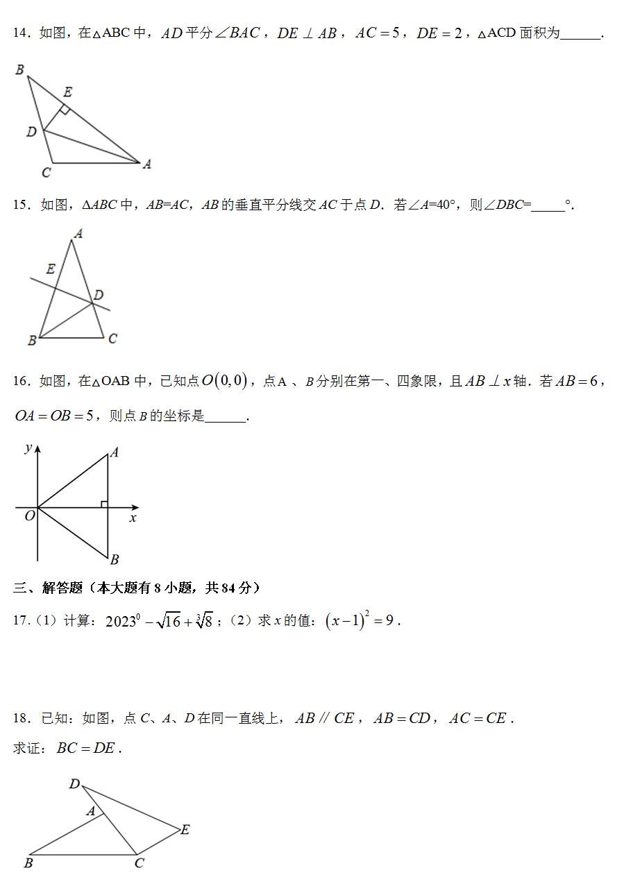 19.已知:如图,△ABC的高BD、CE相交于点O,AB=AC.