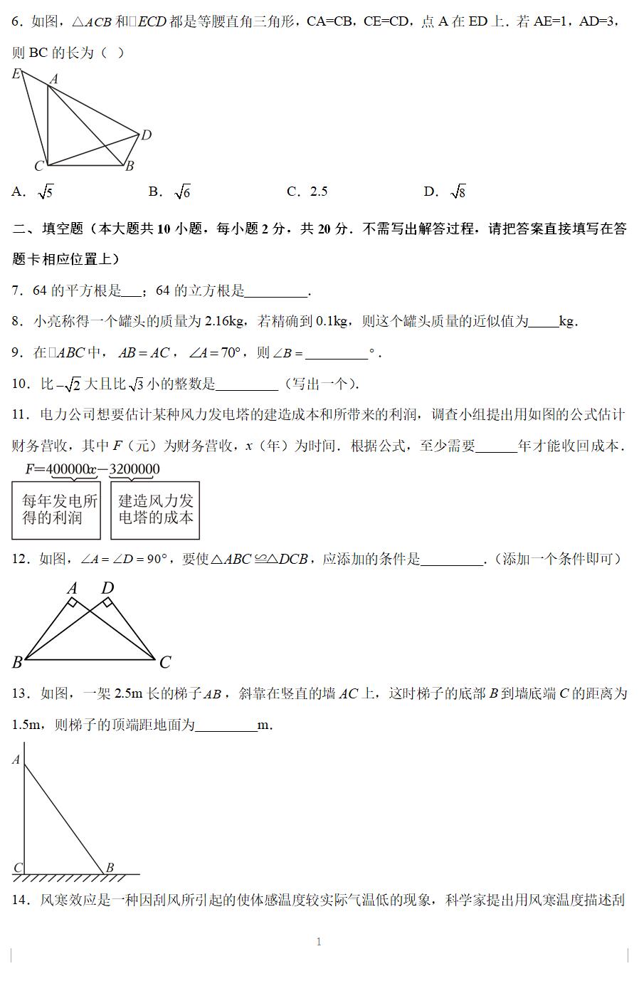 江苏各市2023-2024学年八年级上学期期末数学试卷汇总