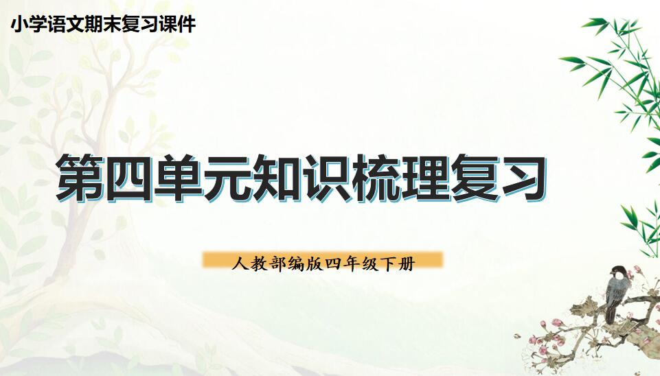 本资料来自专辑: 人教版部编版统编版四年级语文下册期末备考总复习PPT课件 四年级语文下册期末备考总复习PPT课件: 人教版部编版统编版四年级语文下册期末备考第一单元总复习PPT课件 人教版部编版统编版四... 查看文章 人教版部编版统编版四年级语文下册期末备考第四单元总复习PPT课件 资源下载此资源下载价格为2.5学币,VIP免费,请先登录资源每日更新! 升级终身VIP会员,享全站终身永久免费下载特权!限时优惠!如有问题,请联系客服QQ:6056064