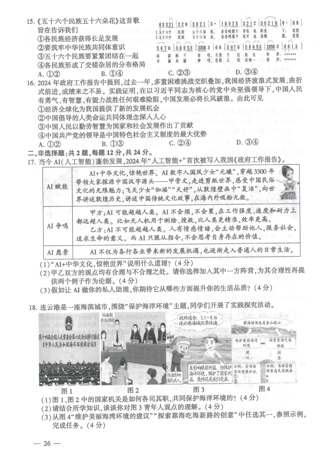 【真题】连云港市2024年中考道德与法治试卷(图片版含答案) ………… 资源下载此资源下载价格为1.5学币,VIP免费,请先登录资源每日更新! 升级终身VIP会员,享全站终身永久免费下载特权!限时优惠!如有问题,请联系客服QQ:6056064