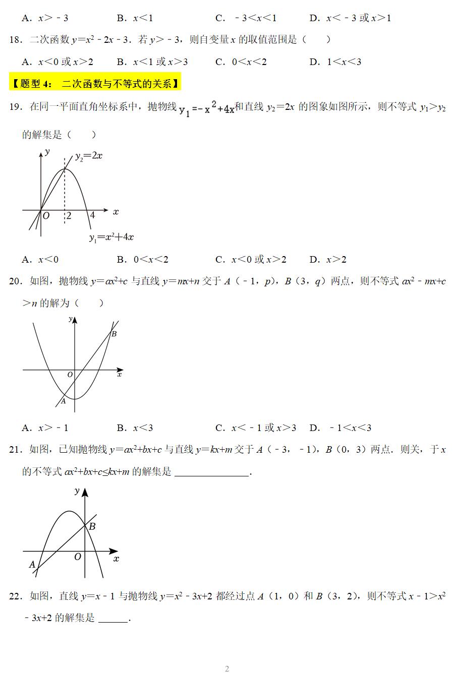 【题型1:二次函数与x轴交点问题】