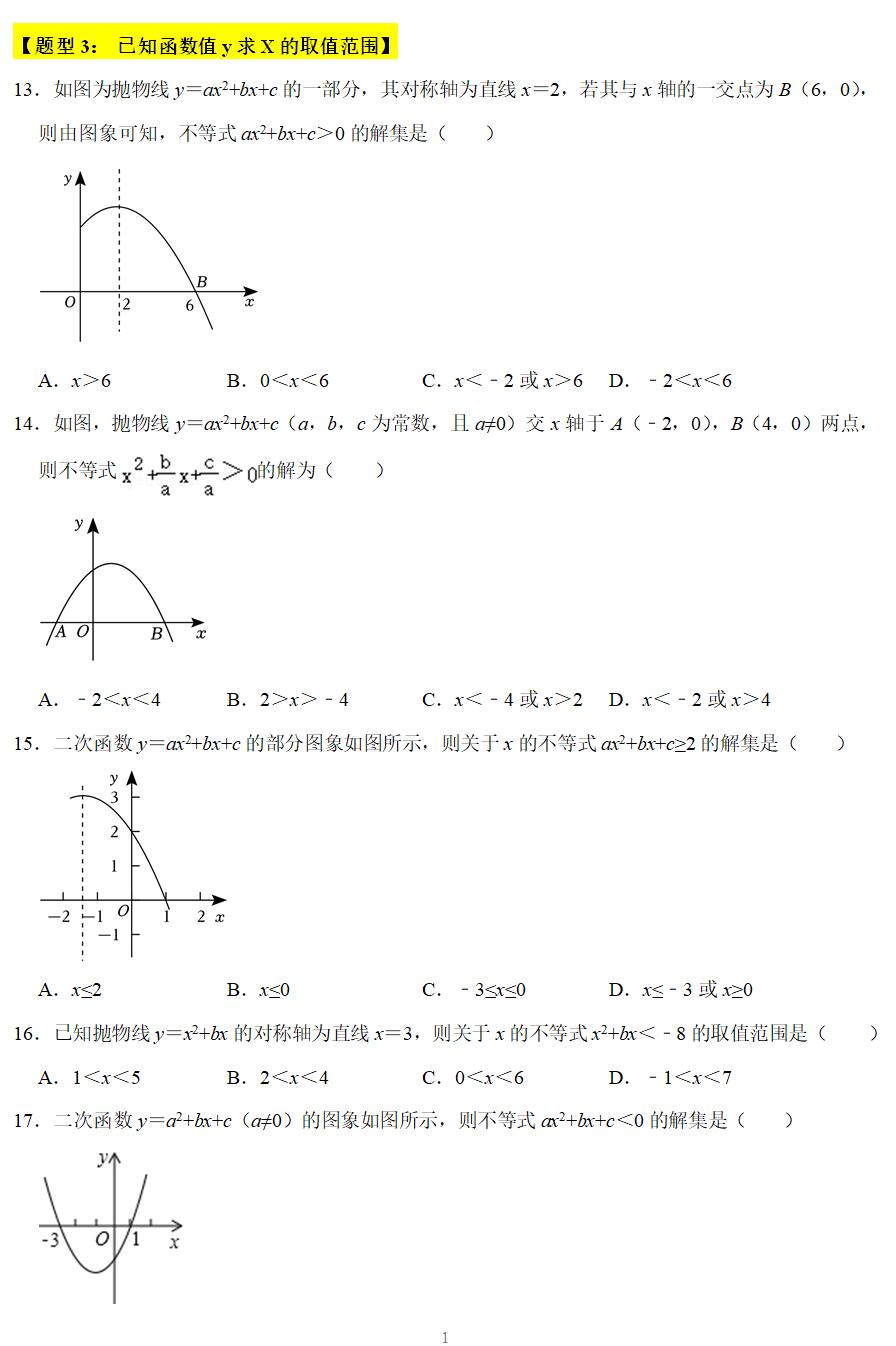 专题07 二次函数与一元二次方程