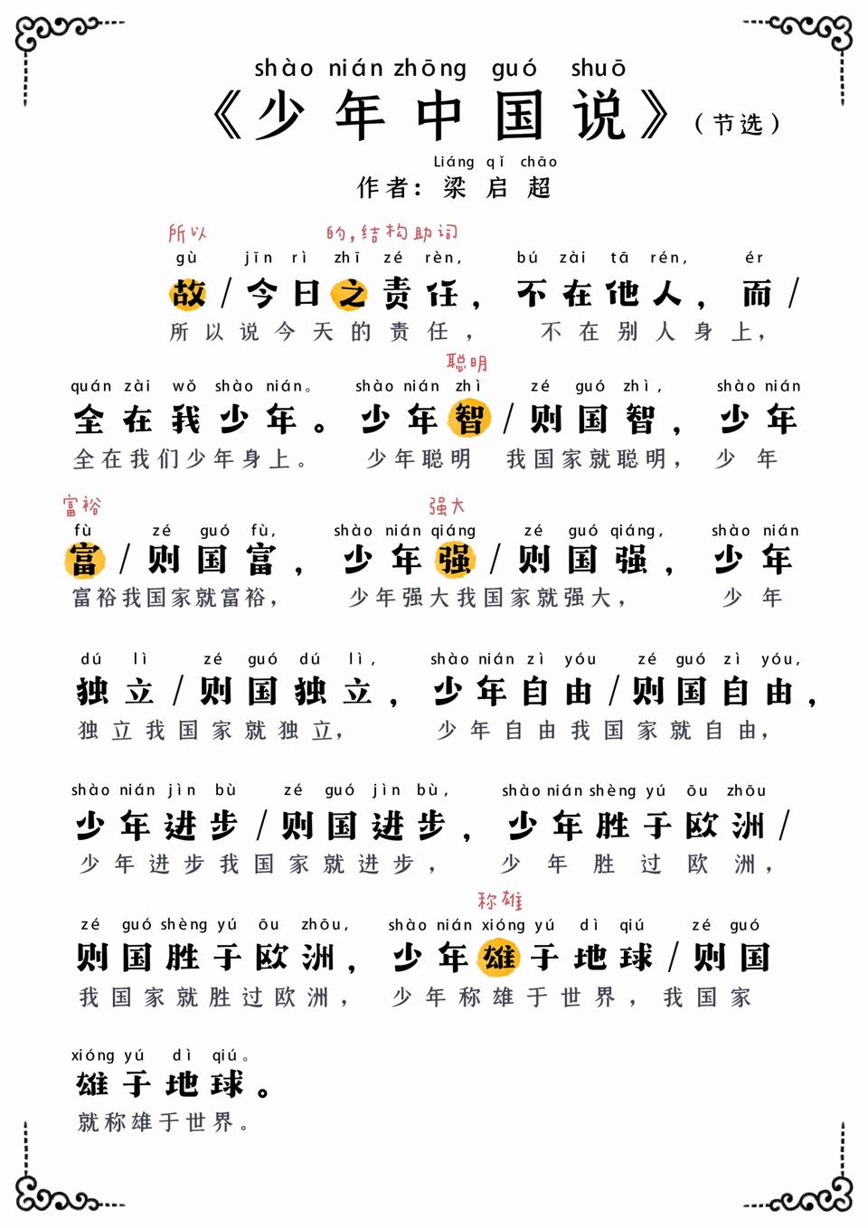 小学语文精读必背小古文《少年中国说》趣味手绘电子版 小学语文精读必背小古文《少年中国说》趣味手绘电子版 小学语文精读必背小古文《少年中国说》趣味手绘电子版 小学语文精读必背小古文《少年中国说》趣味手绘电子版