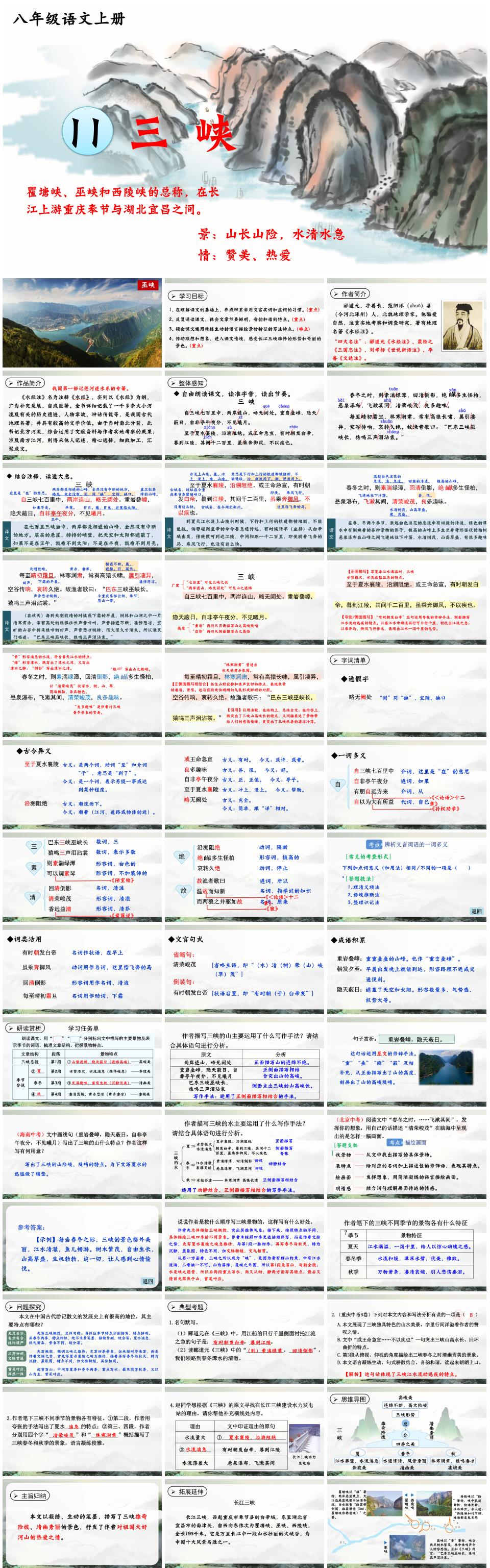 4.借助联想和想象,进入课文情境,感受长江三峡雄伟的形势和奇丽的景色。(重点)