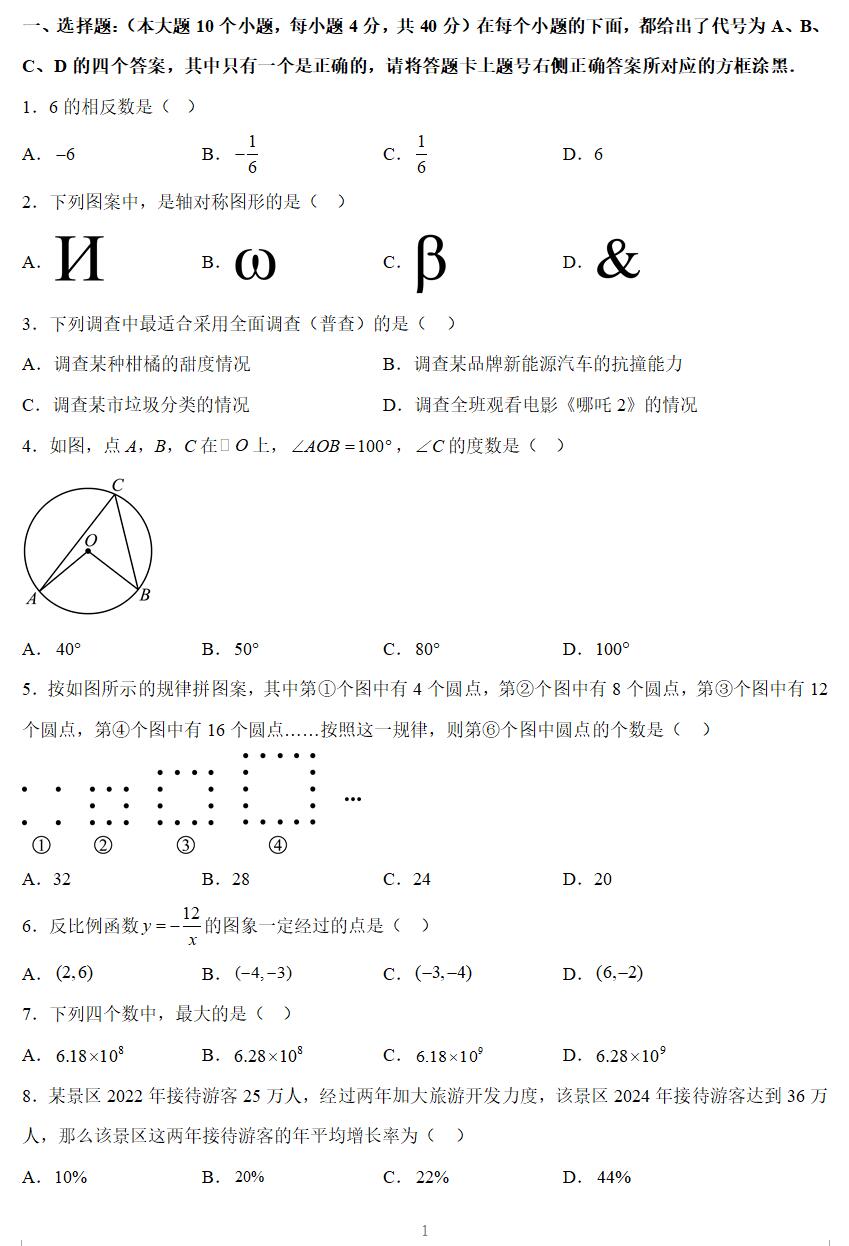 4.考试结束,由监考人员将试题卷和答题卡一并收回.