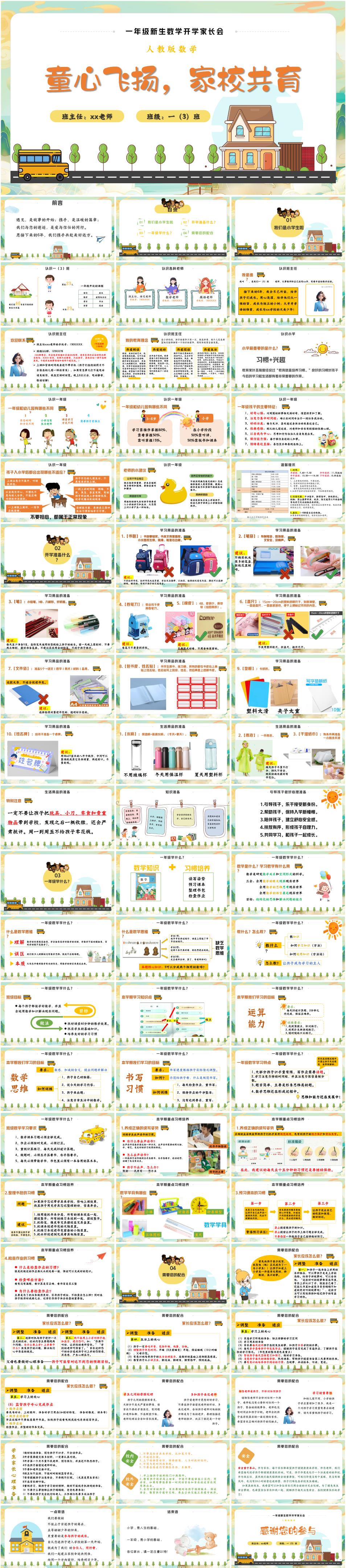 2025-2026学年一年级秋季开学家长会开学第一课人教版数学家长会《童心飞扬,家校共育》PPT课件