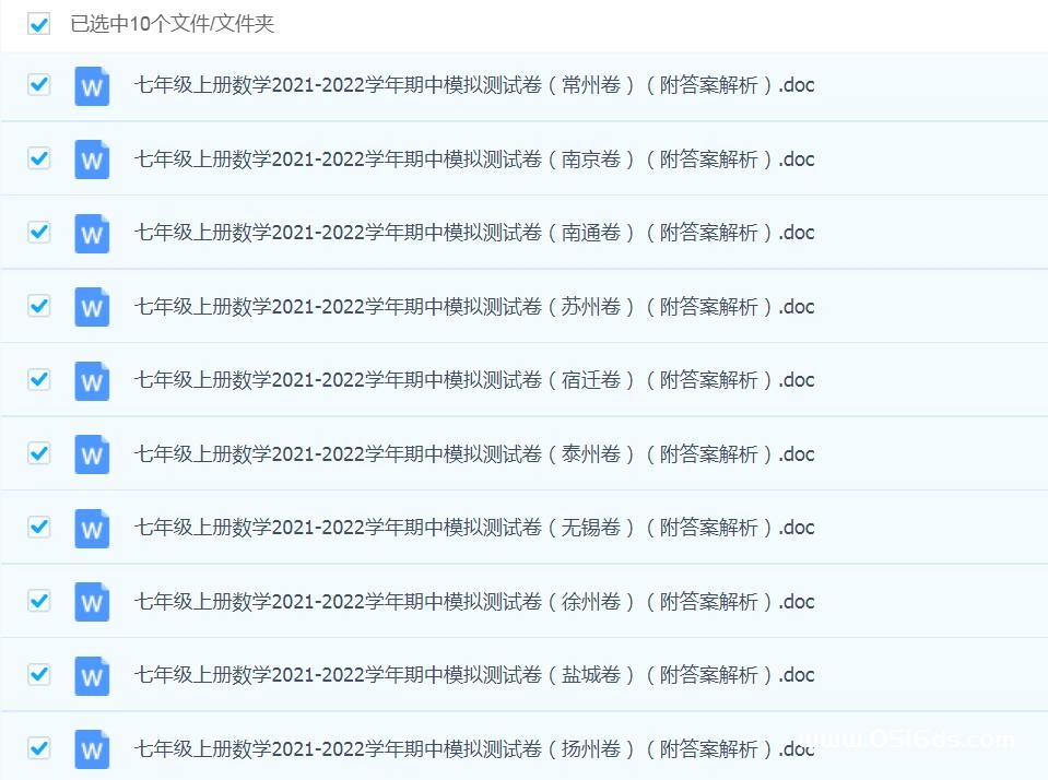 江苏各市2021-2022学年七年级数学上册期中模拟测试卷(附答案解析,共10份)下载:
