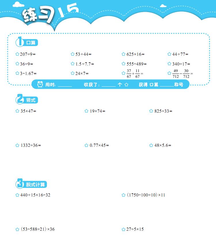 资料来自专辑:学而思数学四年级1-12月计算小超市合集(共12份) 学而思数学四年级6月计算小超市下载: 资源下载此资源下载价格为2.5学币,VIP免费,请先登录资源每日更新! 升级终身VIP会员,享全站终身永久免费下载特权!限时优惠!如有问题,请联系客服QQ:6056064