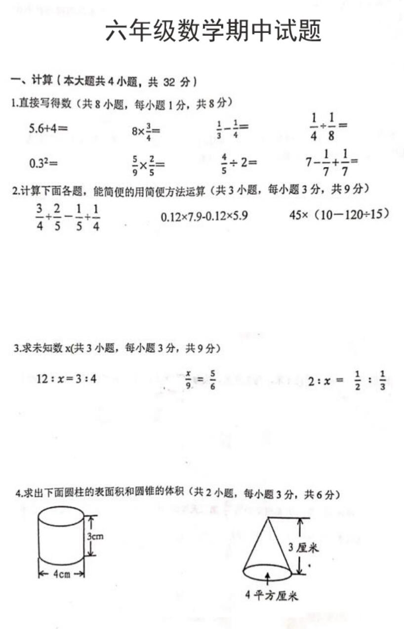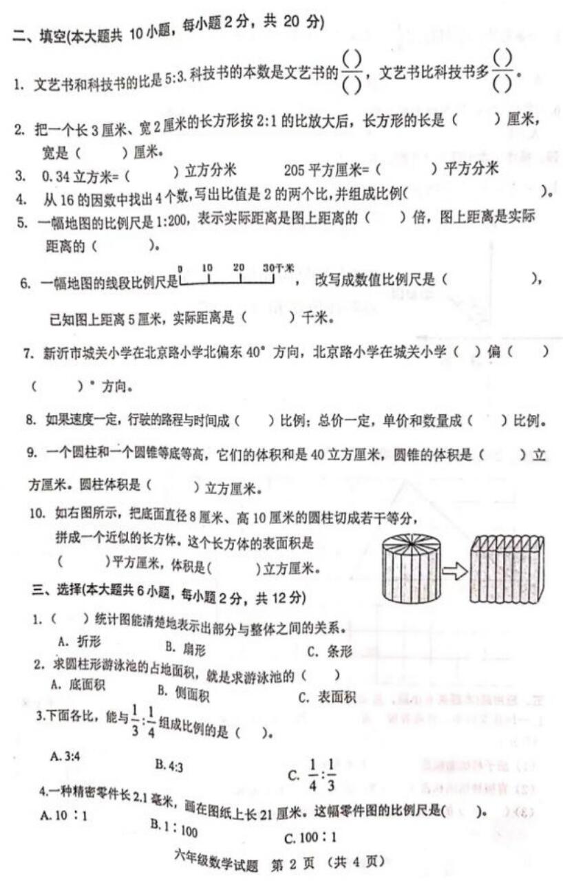【真题】2021-2022学年新沂市六年级第二学期数学期中试卷(附答案)下载: