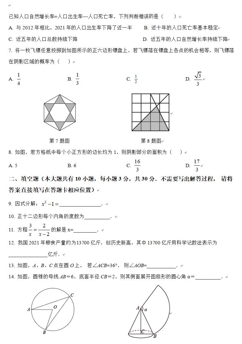 本资料来自专辑:【真题】2022年江苏省徐州市中考各科真题试卷及答案解析