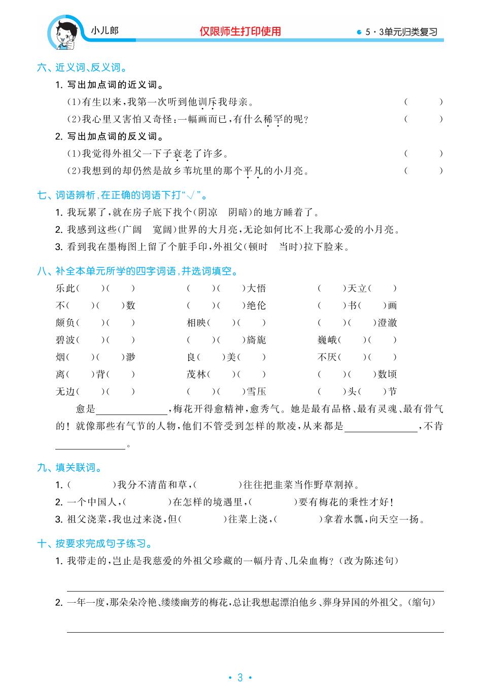 本资料来自专辑:人教部编版1-6年级下册语文53单元归类复习 人教部编版五年级下册语文53单元归类复习 资源下载此资源下载价格为2.9学币,VIP免费,请先登录资源每日更新! 升级终身VIP会员,享全站终身永久免费下载特权!限时优惠!如有问题,请联系客服QQ:6056064
