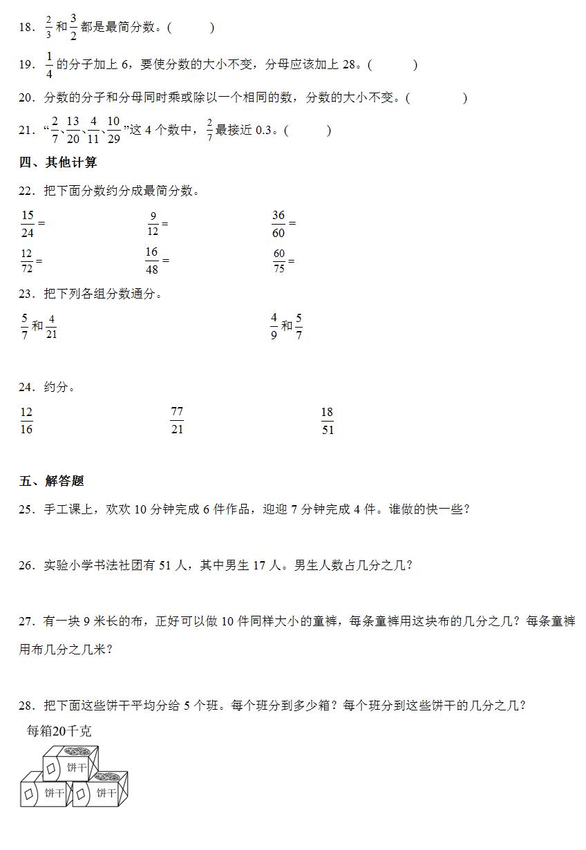 【点睛】本题考查分数的意义,异分母分数比较大小以及分数的约分。