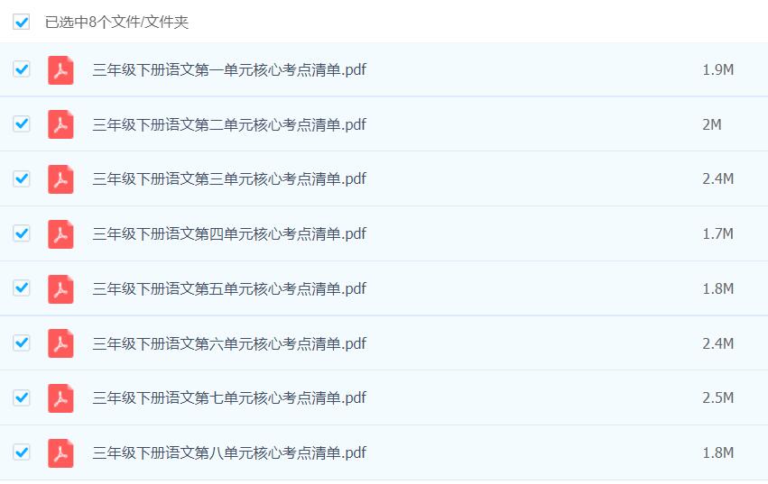 三年级下册语文 单元 核心考点清单: