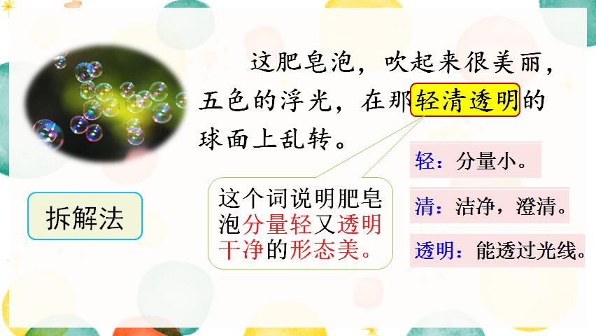 本资料来自专辑:人教部编版统编版三年级下册语文PPT课件汇总 三年级下册语文第20课《肥皂泡》PPT课件 资源下载此资源下载价格为2.5学币,VIP免费,请先登录资源每日更新! 升级终身VIP会员,享全站终身永久免费下载特权!限时优惠!如有问题,请联系客服QQ:6056064