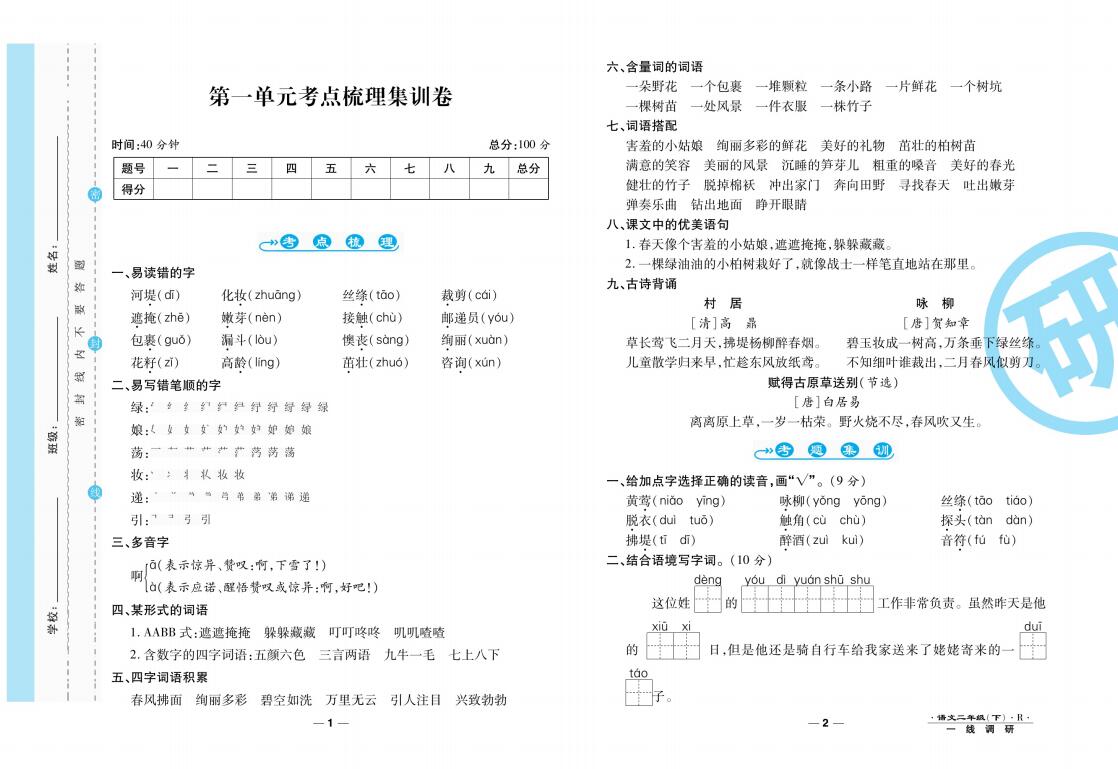 二年级语文下册《一线调研卷》单元卷+期中卷+期末卷