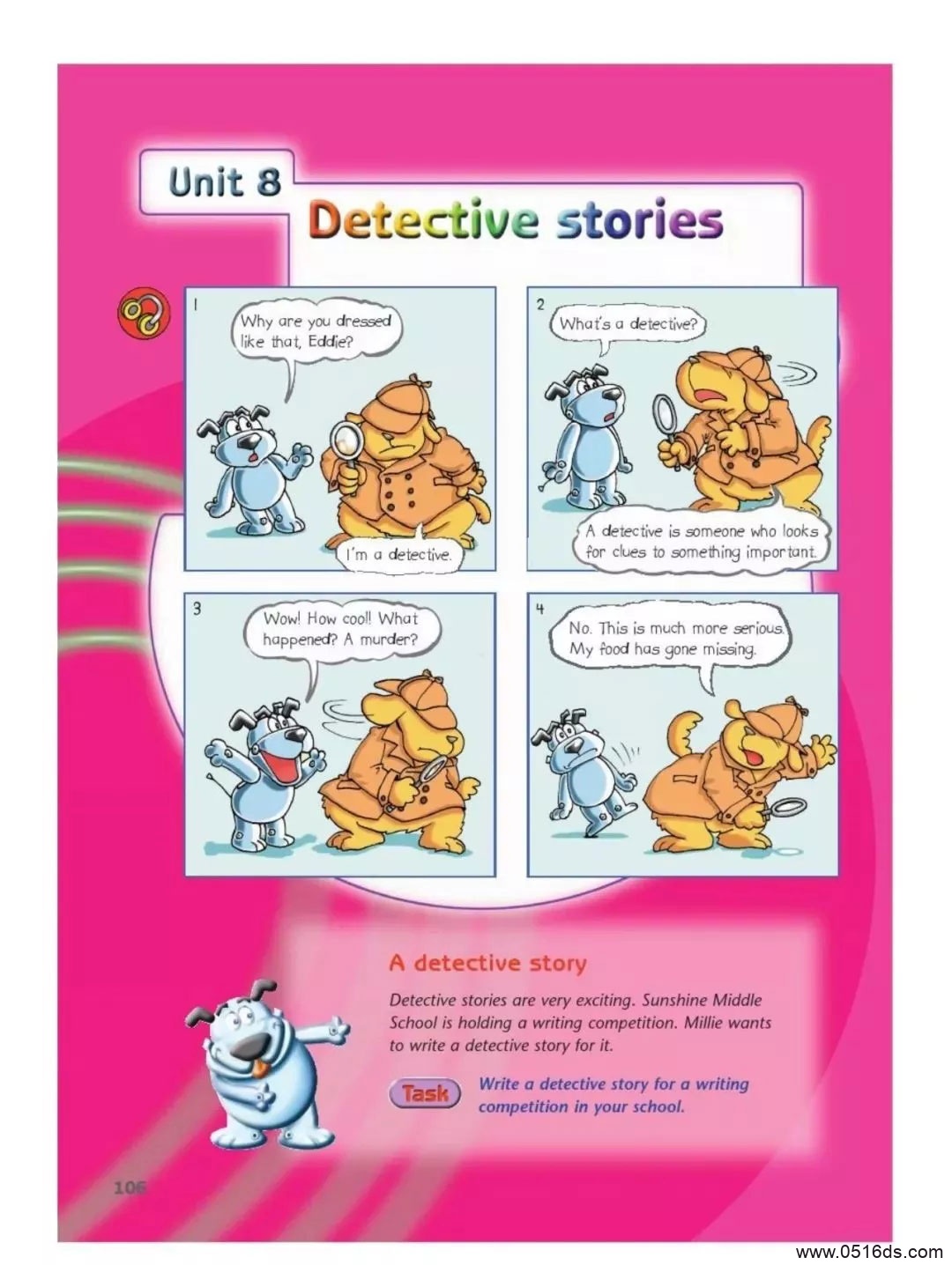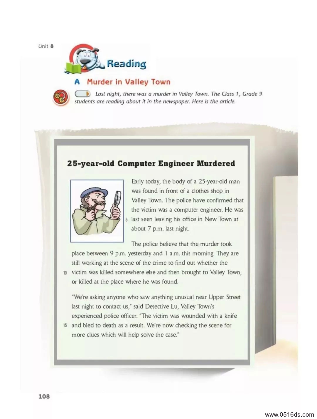 【重点短语】1、be dressed like装扮成2、look for clues tosomething important寻找重要某事的线索3、go missing丢了4、make notes on sb对某人进行记录5、tell the truth 说出真相6、an office workerof medium height 一个中等个办公室职员7、look untidy andnervous 看上去不整洁并且紧张不安的8、the scene of thecrime犯罪现场9、somewhere else别的某个地方10、contact sb联系某人11、be wounded witha knife 因一把刀子受伤12、bleed to deathas a result流血致死13、a well-paid job 一个高收入的工作14、be guilty of sth犯有..罪15、be charged withdoing sth被指控做了某事16、breathe heavily=be out of breath气喘吁吁17、offer a rewardfor sth为..提供一笔奖金18、the arrest ofsb= arrest sb逮捕某19、against the law违反法律against the advice of the doctor20、an elderlycouple 一对老夫妇21、have somethingto do with sth与某事有关22、check every tinydetail检查每个细微的细节23、a master atsolving crimes一个解决案件的大师24、popular amongteenagers在青少年中流行25、be not allowedby the law 不被法律允许26、commit the crime犯罪27、any progress insth在某事上的任何进展/进步28、report the crimeto the police向警方报案29、turn out事实是30、have nothing todo with sth与某事无关31、be in a hurry todo sth急匆匆去做某事32、no criminalrecord 没有犯罪记录33、a man of greatwealth= a wealthy man一个富有的男子34、six months inprison在监狱中六个月35、safety tips to关于…的安全秘诀36、protectyourselves against crime保护你对抗犯罪37、be charged withtheft被控偷窃38、guard againstany possible danger around us提防我们周围任何可能的危险39、get along/onwith sb与某人和睦相处40、do sth for aliving 以做某事谋生41、be under arrestfor sth因..而被捕42、find thecriminal 发现犯罪43、be silly to dosth.= It’s silly of sb.to do sth.某人做某事真傻44、morning、afternoon、evening如果有修饰词修饰的时候 ,介词要用 on如果没有修饰词应用in【重点句型】1. Tom is an honest boy. He neverlies/tells lies.Tom是个诚实的男孩,他从不撒谎2. The police are still looking for cluesto the murder.警方现在还在寻找这起谋杀案的线索。3. The fire is much more serious than weexpected.这场火灾比我们预期的要严重得多。4. Why are you dressed as a detective?你为什么打扮成一个侦探?5. The police have made notes on everyone.警察已经给每个人做了笔录。6. Our maths teacher is of medium heightand a little bit fat.我们的数学老师中等身高,微胖。9、Since you haven’tfound your missing umbrella here somewhere else.既然在这儿没找到你丢失的伞,你最好去其他地方看看。10、The lostchildren were last seen playing by the river.有人最后看见那些失踪的孩子在河边玩耍。11、We haven’t foundout whether the murder took place last night or this morning.我们还未弄清楚这起谋杀案是发生在昨晚还是今天早晨。12、The man waswounded with a knife and bled to death.那个男人被刀刺伤,流血致死。13、The police arechecking the scene for more clues to the crime.警察正在检查现场,查找更多有关此案的线索。14、Did you seeanything unusual on your way home?在你回家的路上你看到任何不寻常的事了吗?15、The police haveconfirmed that the victim was a 20-year~old college student.警方已经确认受害者是一个20岁的大学生。16、Tim might havesomething to do with the murder.Tim可能和这个谋杀案有关系。17、The boy isbreathing heavily as he has just fought with others.那个男孩正呼吸急促因为他刚和别人打了一架18、The man ( whowas) guilty of computer crime was found dead in his home.这个犯有电脑方面的罪的男子被发现死在家中。19、Yesterday a manwith a mask broke into the shop and took away the money.昨天有个戴面具的男人闯入商店,拿走了钱。20、I want to findsomewhere quiet to have a rest.我想找某个安静的地方休息一下。21、A reward of 5000yuan will be offered to the winner of the competition.五千元人民币的奖励将给予这次比赛的获胜者。22、It turned outthat he was in a hurry to take the underground at that time.原来他当时正匆忙赶去坐地铁。23、More than oneperson insists/ insisted that the man had nothing to do with the trafficaccident.不止一个人坚称这男子与这次的交通事故无关。24、Are you the ladywho/ that bought a wool skirt in our shop yesterday?你就是昨天在我们店里买了一条羊毛短裙的那位女士吗?25、This is the bestmovie (that) I have ever seen.这是我看过的最好的一部电影。26、He has reportedthe crime ( which/ that ) his boss committed to the police.他已经向警方告发了他老板犯的罪。27、The police arechecking for clues which/ that may help solve the case.警察正在寻找能够帮助解决案件的线索。28、Remember to shutthe windows before you leave,will you?记得走之前关窗,好不好?好的,我会的。29、The girl who hasknown the victim for a long time has no criminal record.这个已经认识受害人很长时间的女孩没有犯罪记录。30、Carrying a lotof money with us can be dangerous.我们随身携带大量的钱会很危险。31、Do you know howlong the man of great wealth was in prison?你知道这个富有的男人坐过多久的牢吗?32、This is the onlyway (that) I can think of to solve the problem.这是我能想出的唯一解决问题的办法。33、They didn’trealize that the house was broken into until they found some valuable jewels wasstolen直到发现一些贵重珠宝被偷了他们才意识到房子被闯入了。34、He told us whathe did for a living before.他告诉了我们他以前是做什么维持生计的。35、It ‘s necessaryto get along well with the neighbors