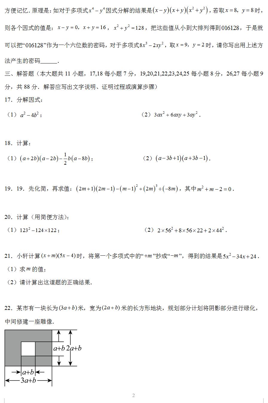 9章《整式乘法与因式分解》