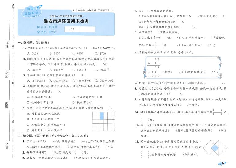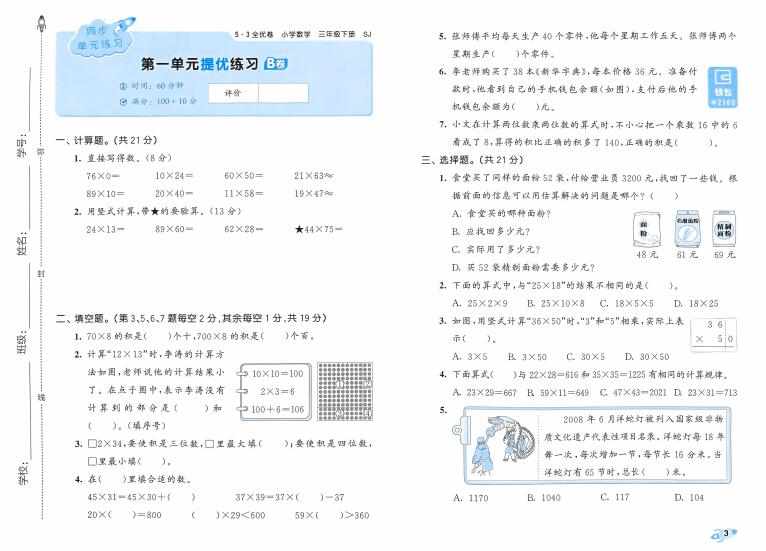 本资料来自专辑: 2024年春苏教版小学1-6年级数学下册《53全优卷》(单元卷+期中卷+期末卷) 2024年春苏教版小学1-6年级数学下册《53全优卷》: 2024年春苏教版小学一年级数学下册《53全优卷》(单元卷+期中卷+期末卷) ... 查看文章 2024年春苏教版小学三年级数学下册《53全优卷》 资源下载此资源下载价格为3.9学币,VIP免费,请先登录资源每日更新! 升级终身VIP会员,享全站终身永久免费下载特权!限时优惠!如有问题,请联系客服QQ:6056064