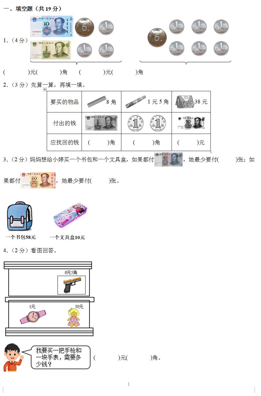 23.(11分)(1)买一只玩具兔和七巧板,一共要( )元( )角。