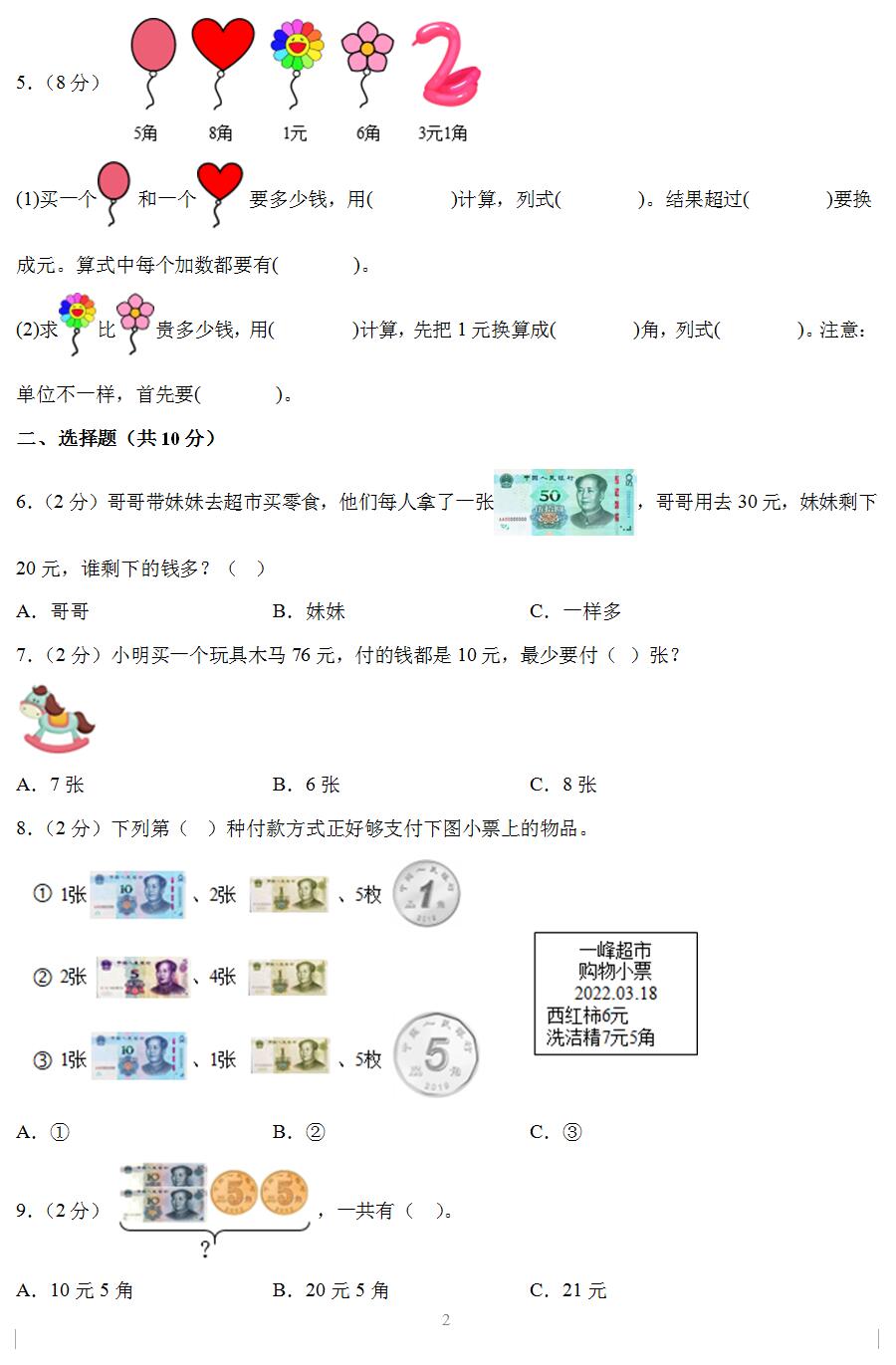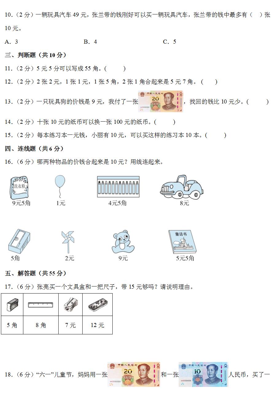 【点睛】本题考查人民币的认识,能够让学生熟练掌握知识点。
