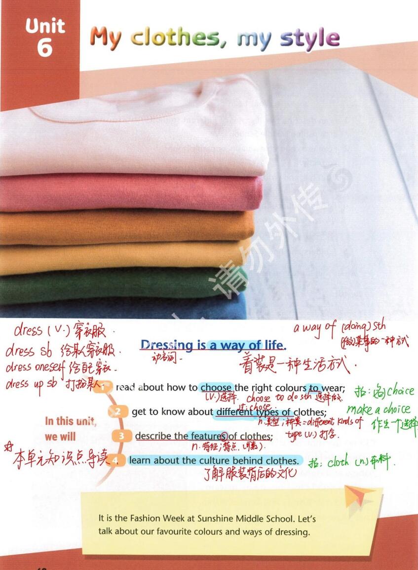 本资料来自专辑: 2024-2025学年新七年级英语上册课本笔记(译林版) 2024-2025学年新七年级英语上册课本笔记: 2024-2025学年新七年级英语上册Unit1《This is me! 》课本笔记(译林版) 2024-2025学... 查看文章 2024-2025学年新七年级英语上册Unit6《My clothes,my style》课本笔记(译林版) 资源下载此资源下载价格为1学币,VIP免费,请先登录资源每日更新! 升级终身VIP会员,享全站终身永久免费下载特权!限时优惠!如有问题,请联系客服QQ:6056064